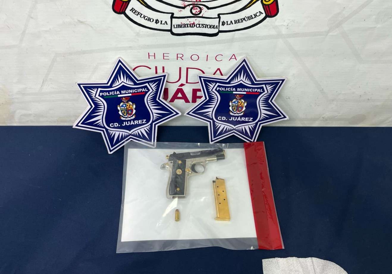 Ciudad Juárez -. Elementos de la Secretaría de Seguridad Pública Municipal, arrestaron a Rodolfo A. A. y Octavio M. A., por su presunta responsabilidad en la comisión del delito de contra la ley federal de armas de fuego y explosivos.