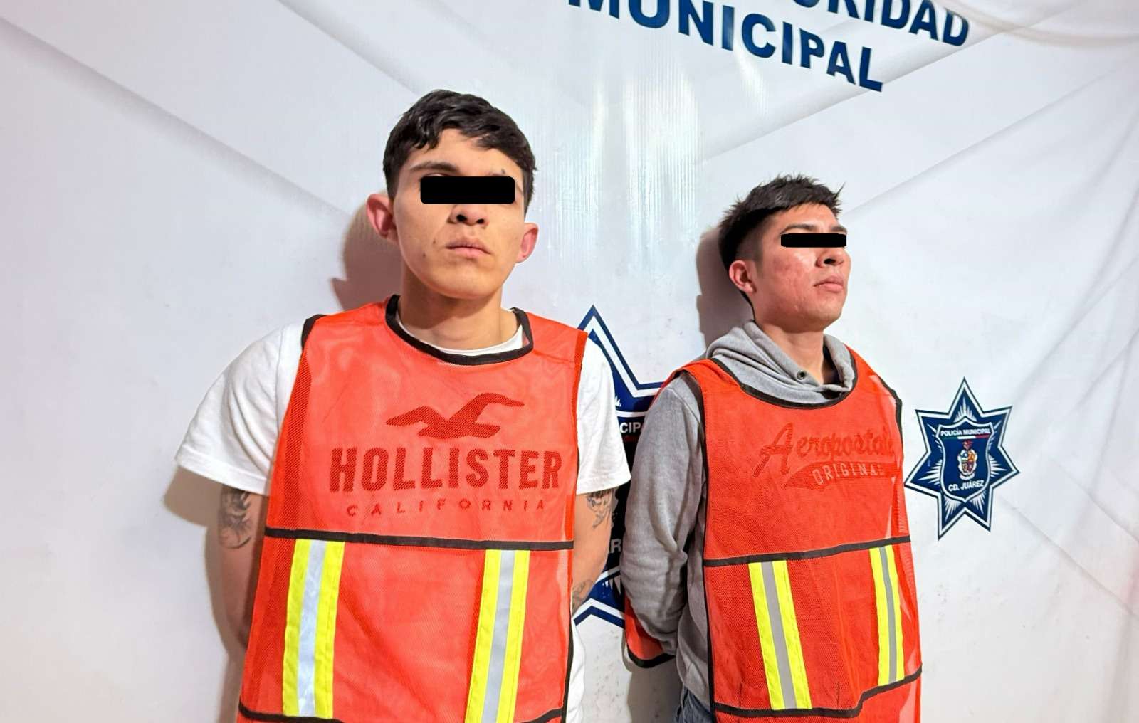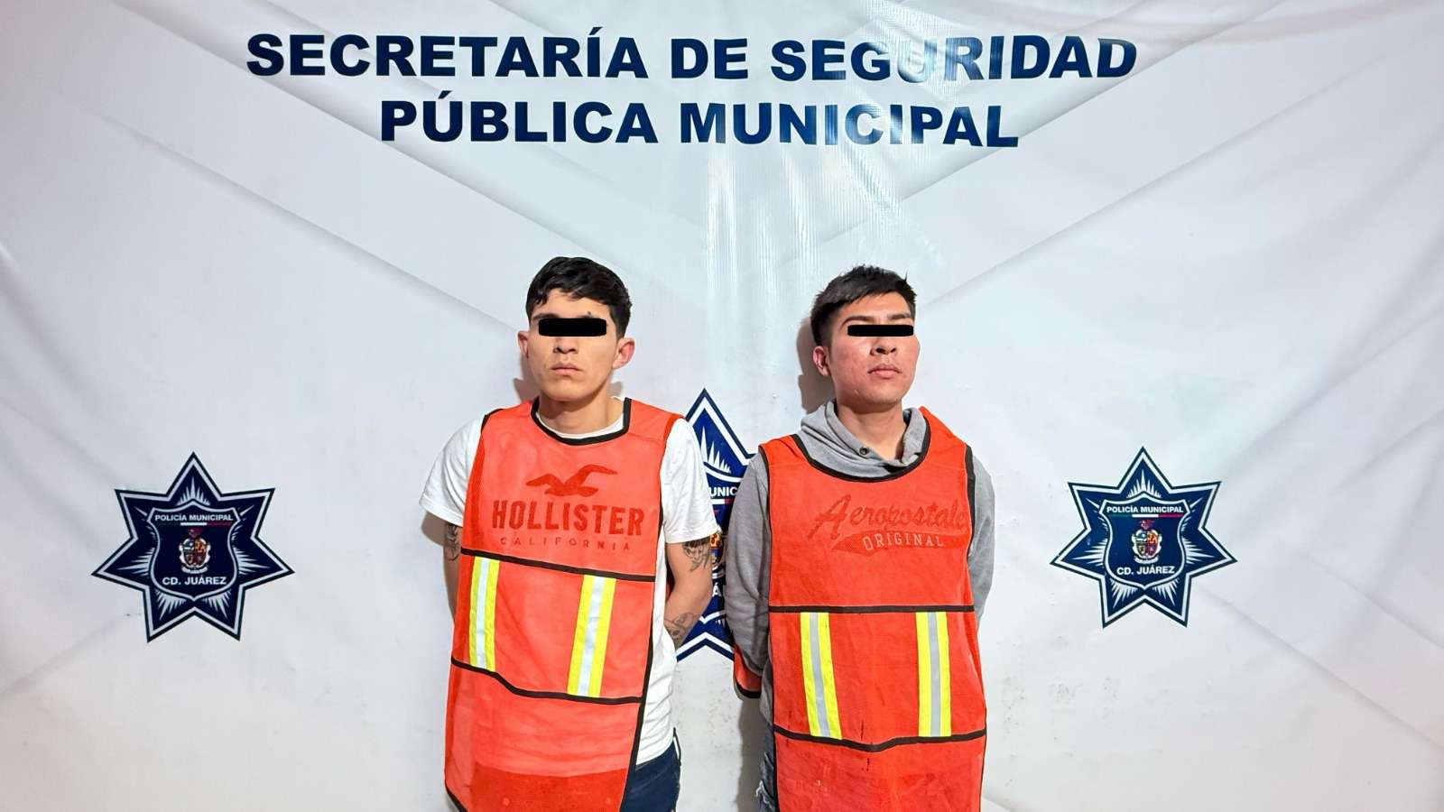Ciudad Juárez .- Elementos de la Secretaría de Seguridad Pública Municipal arrestaron a Edwin R. R. y Oscar T. V., por su presunta responsabilidad en la comisión de delitos contra la ley federal de armas de fuego y explosivos.
