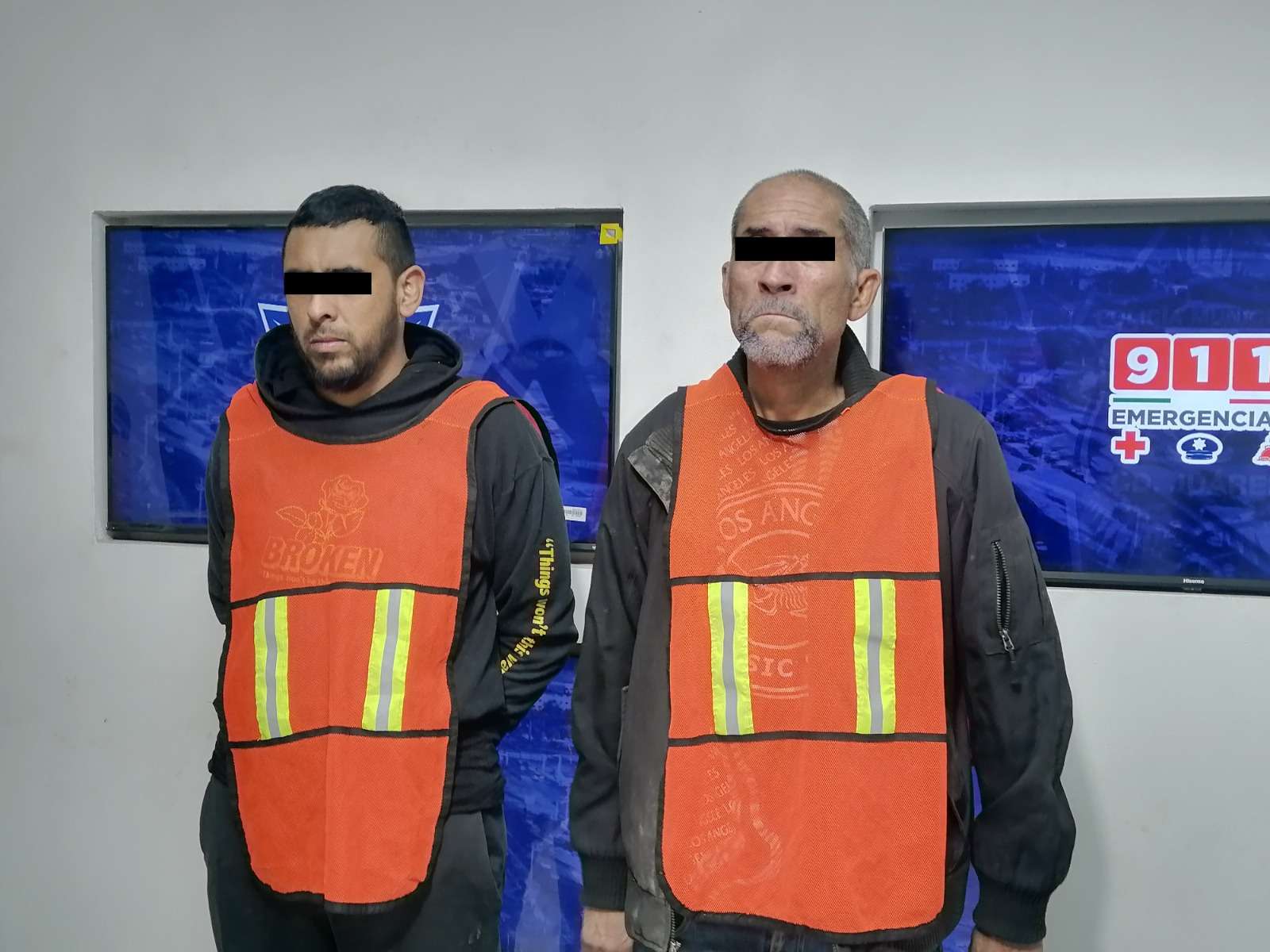 Ciudad Juárez.- Elementos de la Secretaría de Seguridad Pública Municipal, detuvieron a Francisco Manuel B. I. y Rafael C. S., por su presunta responsabilidad en la comisión de los delitos de daños y robo.