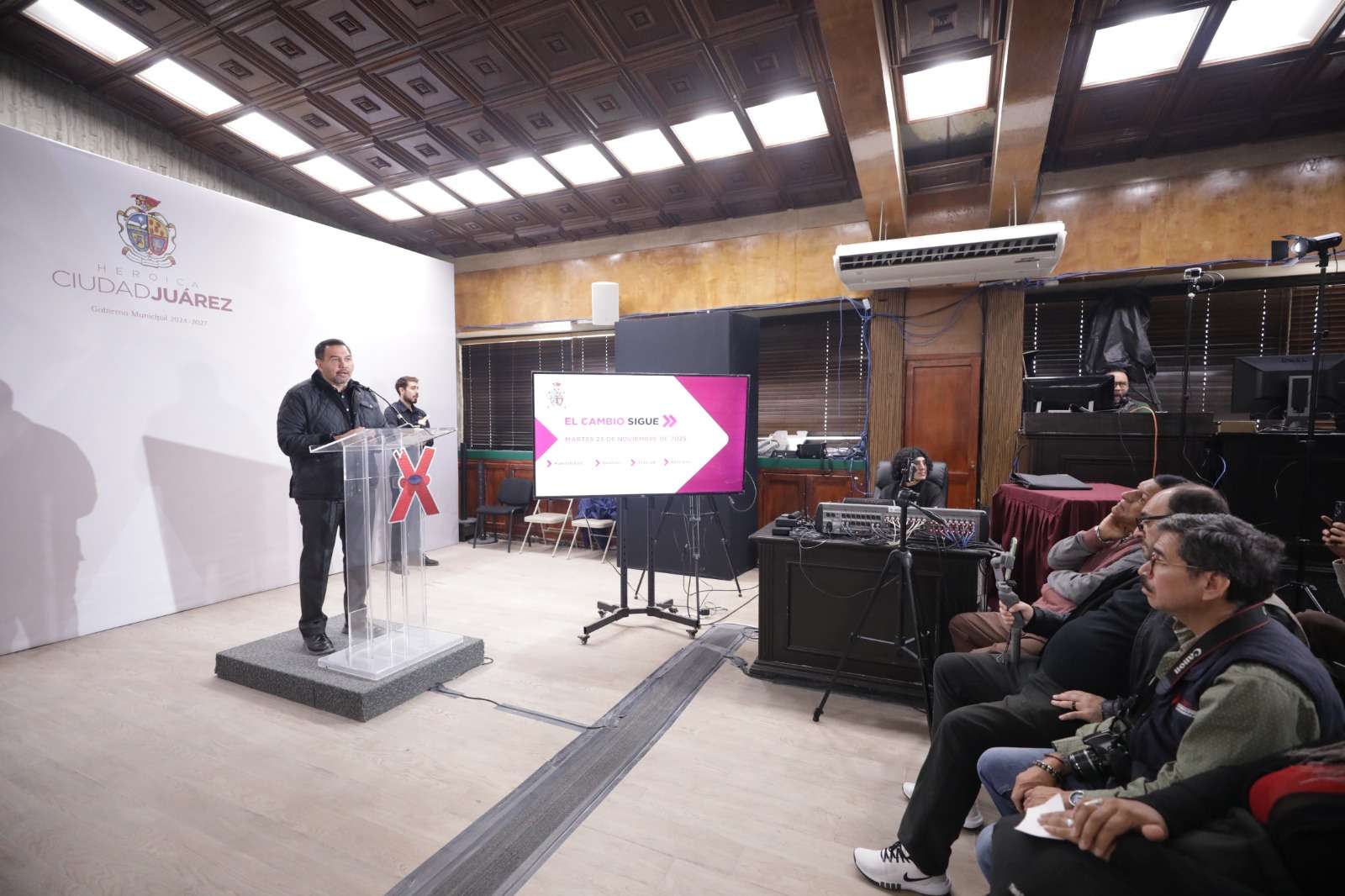 Ciudad Juárez.- Durante la conferencia semanera, el alcalde Cruz Pérez Cuéllar informó que el Municipio se mantendrá prudente ante la negociación que la Secretaría de Gobernación sostiene para resolver los bloqueos en los cruces fronterizos.