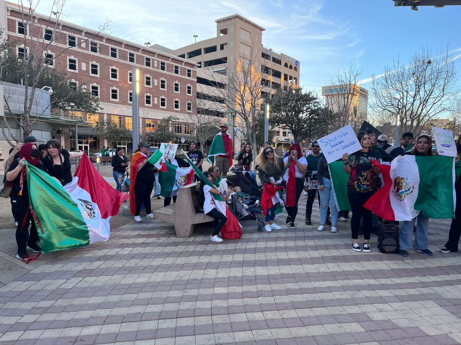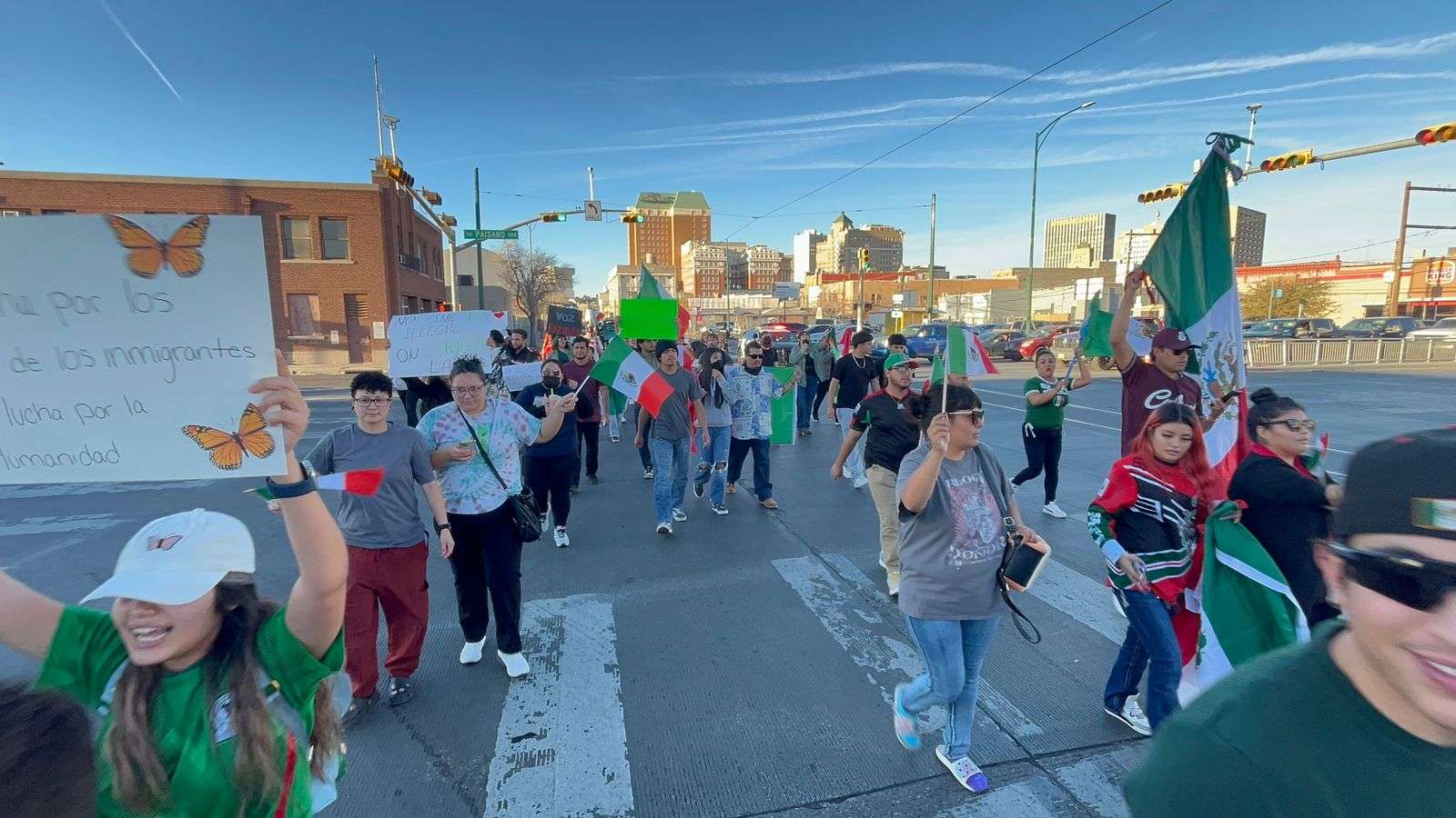 La multitud, compuesta por ciudadanos mexicanos que viven y trabajan en la zona fronteriza, se unió para expresar su oposición a las políticas restrictivas hacia los inmigrantes.