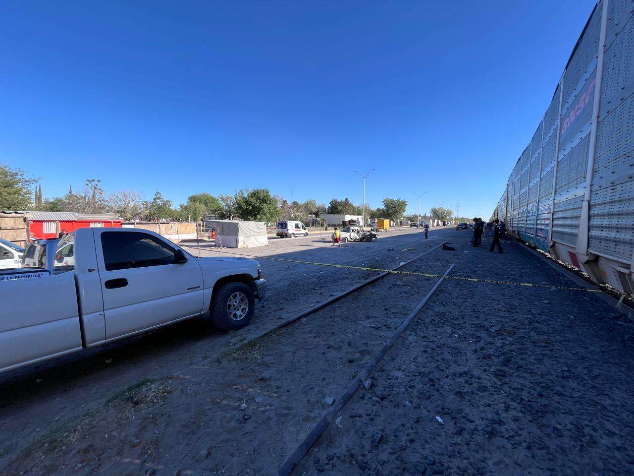 El accidente ocurrió sobre la calle Miguel Hidalgo, casi en la intersección con Panamericana, donde la víctima circulaba a bordo de una camioneta tipo pickup. De acuerdo con los primeros reportes, el conductor intentó cruzar antes del paso del tren; sin embargo, la unidad fue embestida del lado del conductor.