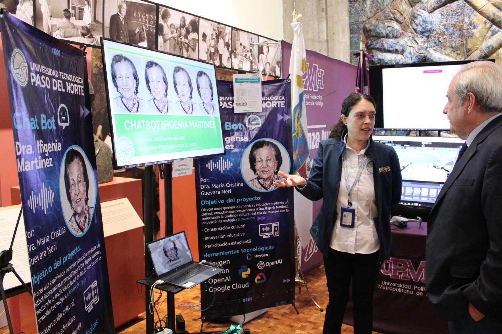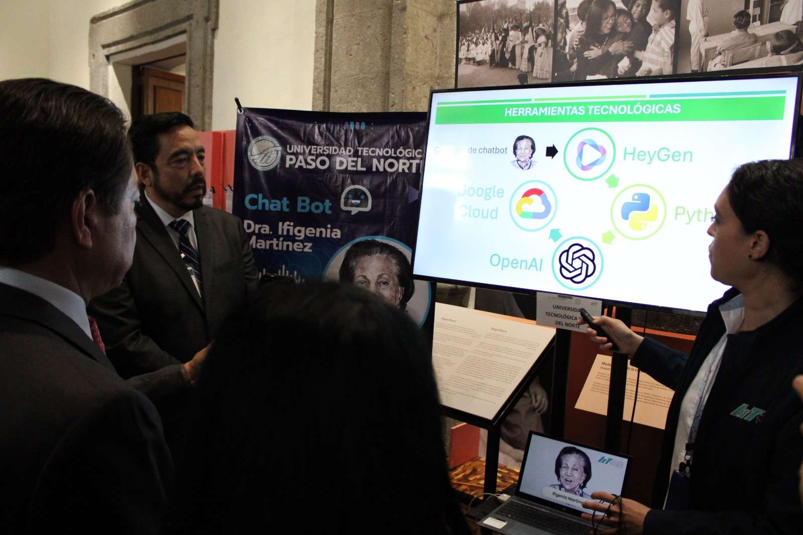 Ciudad Juárez.- María Cristina Guevara Neri, docente e investigadora de la Universidad Tecnológica Paso del Norte (UTPN), presentó su innovador proyecto de Inteligencia Artificial “Chatbot: Ifigenia Martínez” en la Secretaría de Educación Pública (SEP).