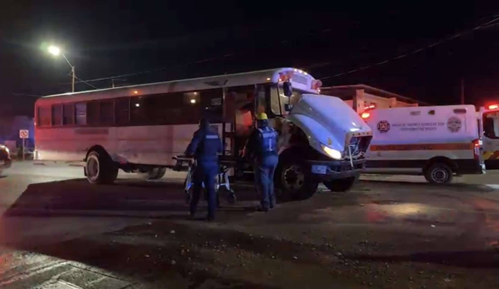 En el camión de transporte, siete pasajeros sufrieron golpes leves y no requirieron hospitalización, a excepción de uno, quien fue atendido por paramédicos y trasladado a un hospital.
