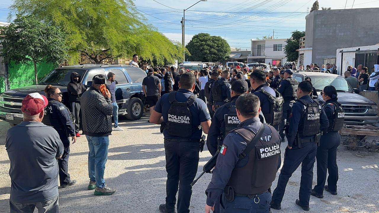 Un actuario de la Constructora Riggs apoyado por más de 20 unidades de Seguridad Pública acudió al lugar para hablar con las familias.
