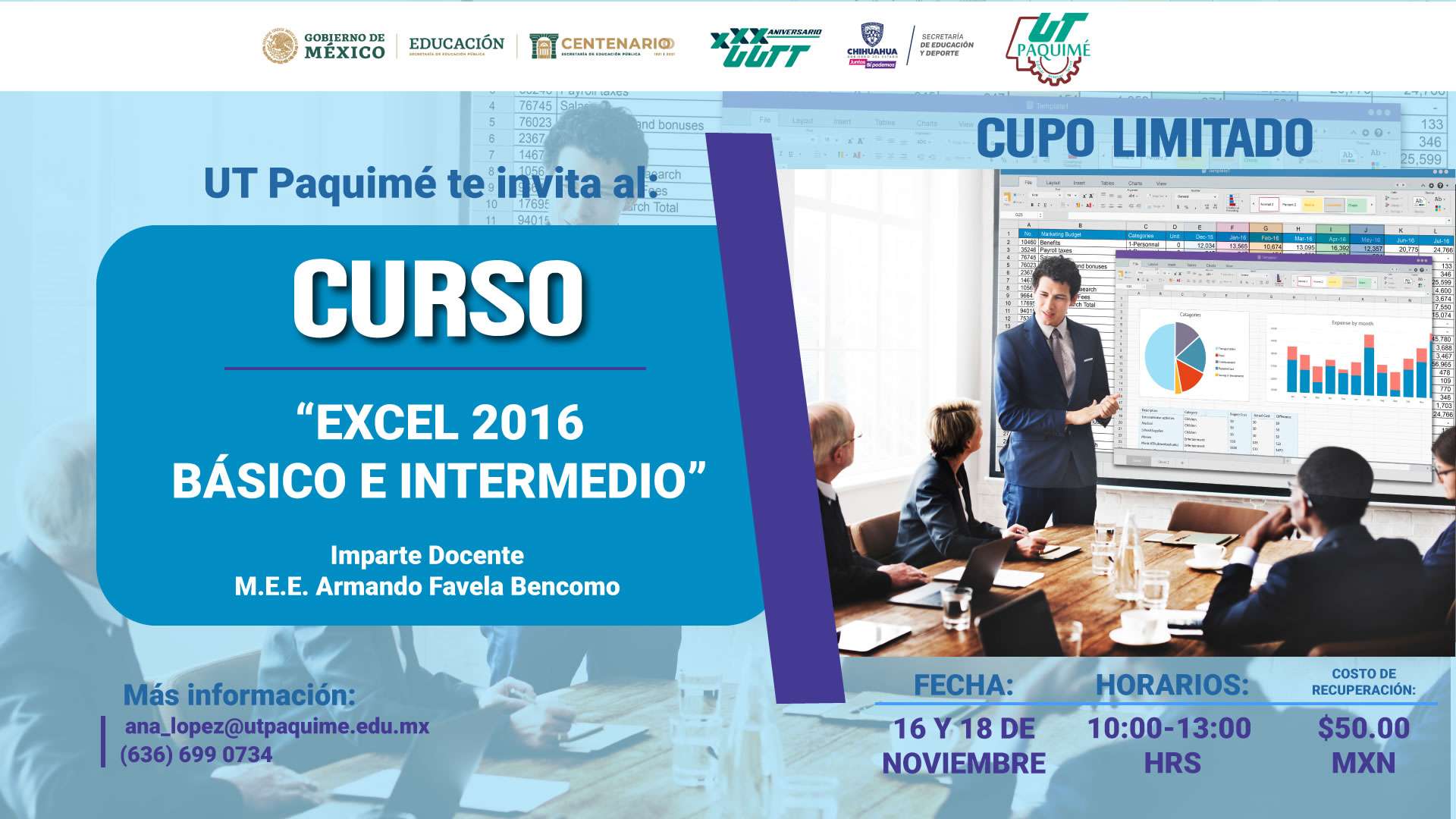 El docente Armando Favela de la carrera de Tecnologías impartirá la capacitación de “Excel 2016 básico e intermedio”, los días 16 y 18 de noviembre en horario de 10:00 a 13:00 horas.