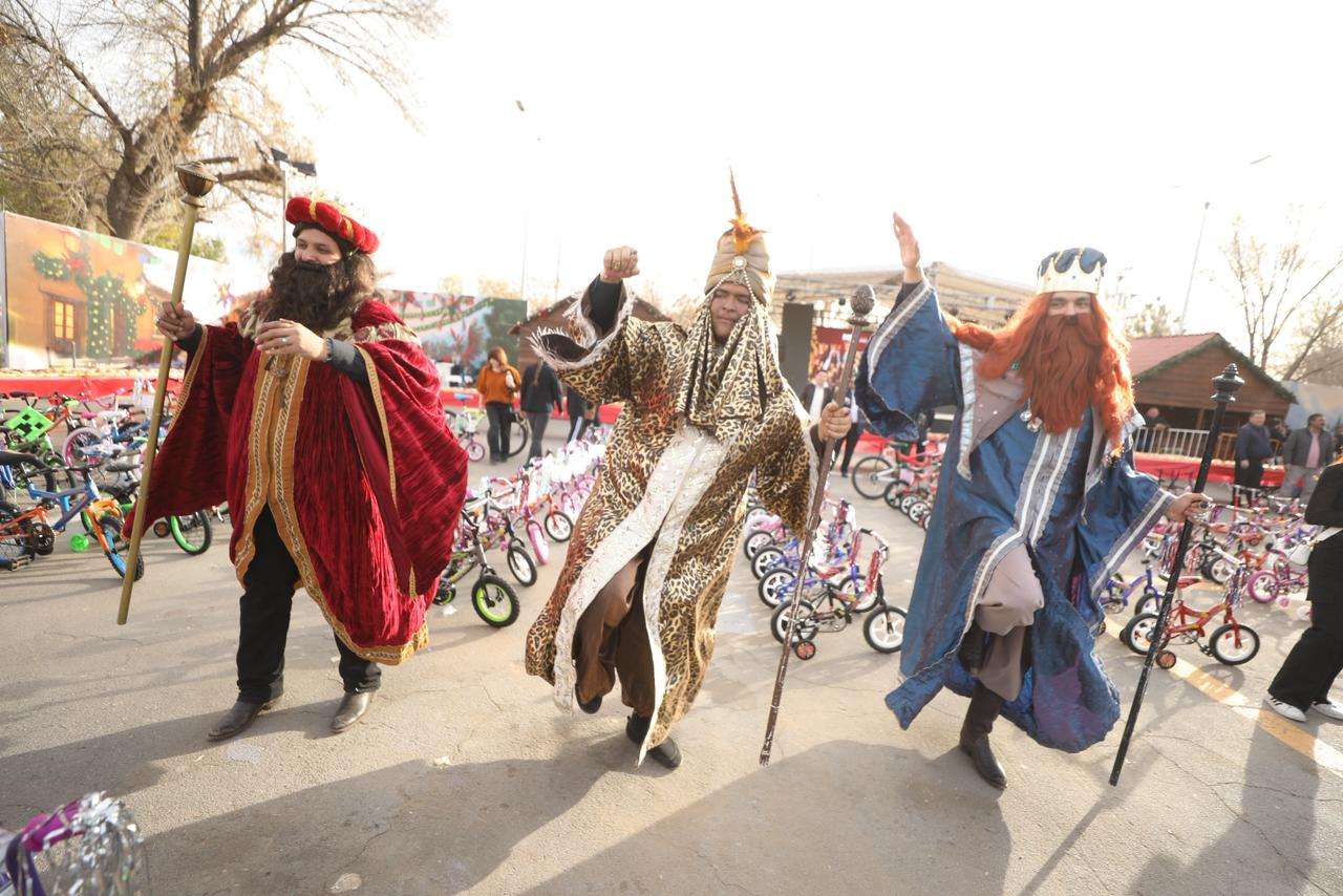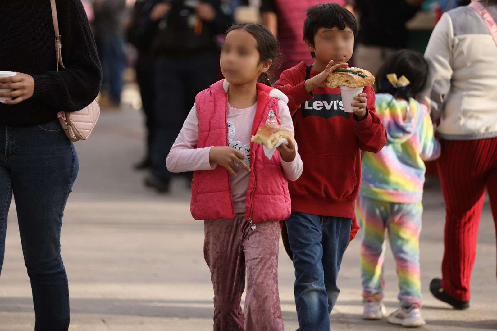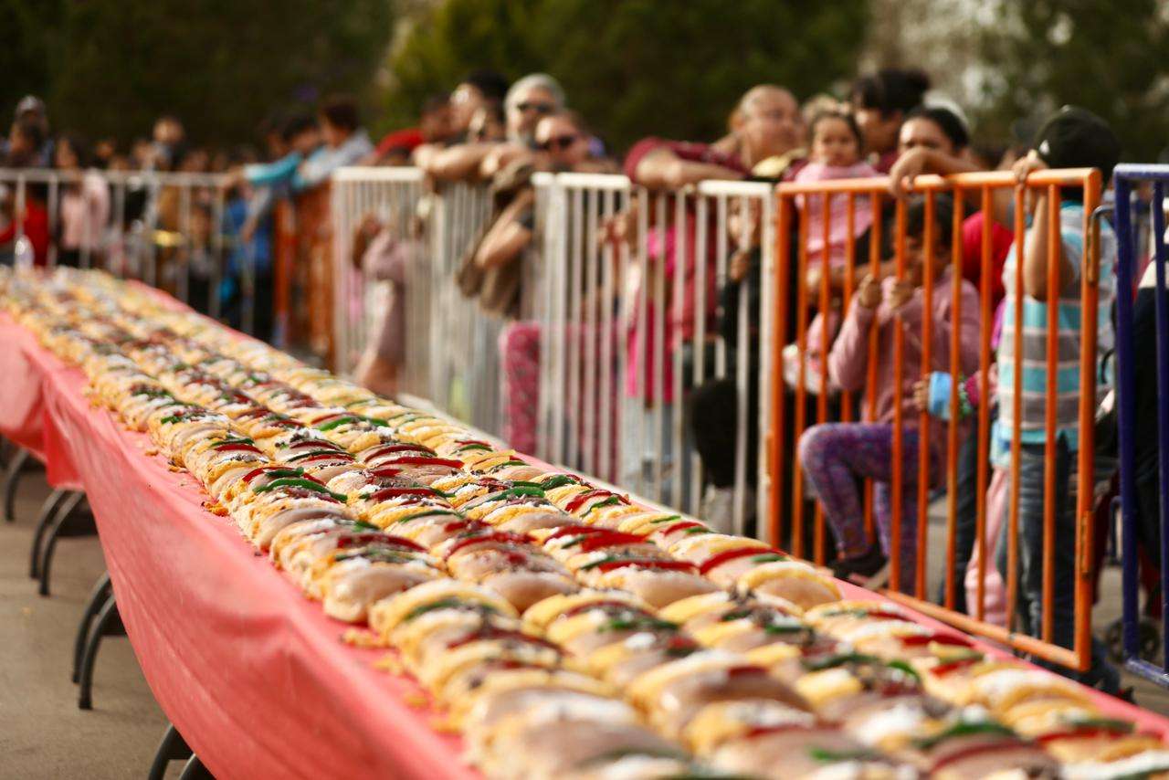 Ciudad Juárez.- Cientos de familias juarenses acudieron esta tarde al parque DIF, situado en la avenida Heroico Colegio Militar, para partir la rosca gigante de 300 metros por el Día de los Reyes Magos.