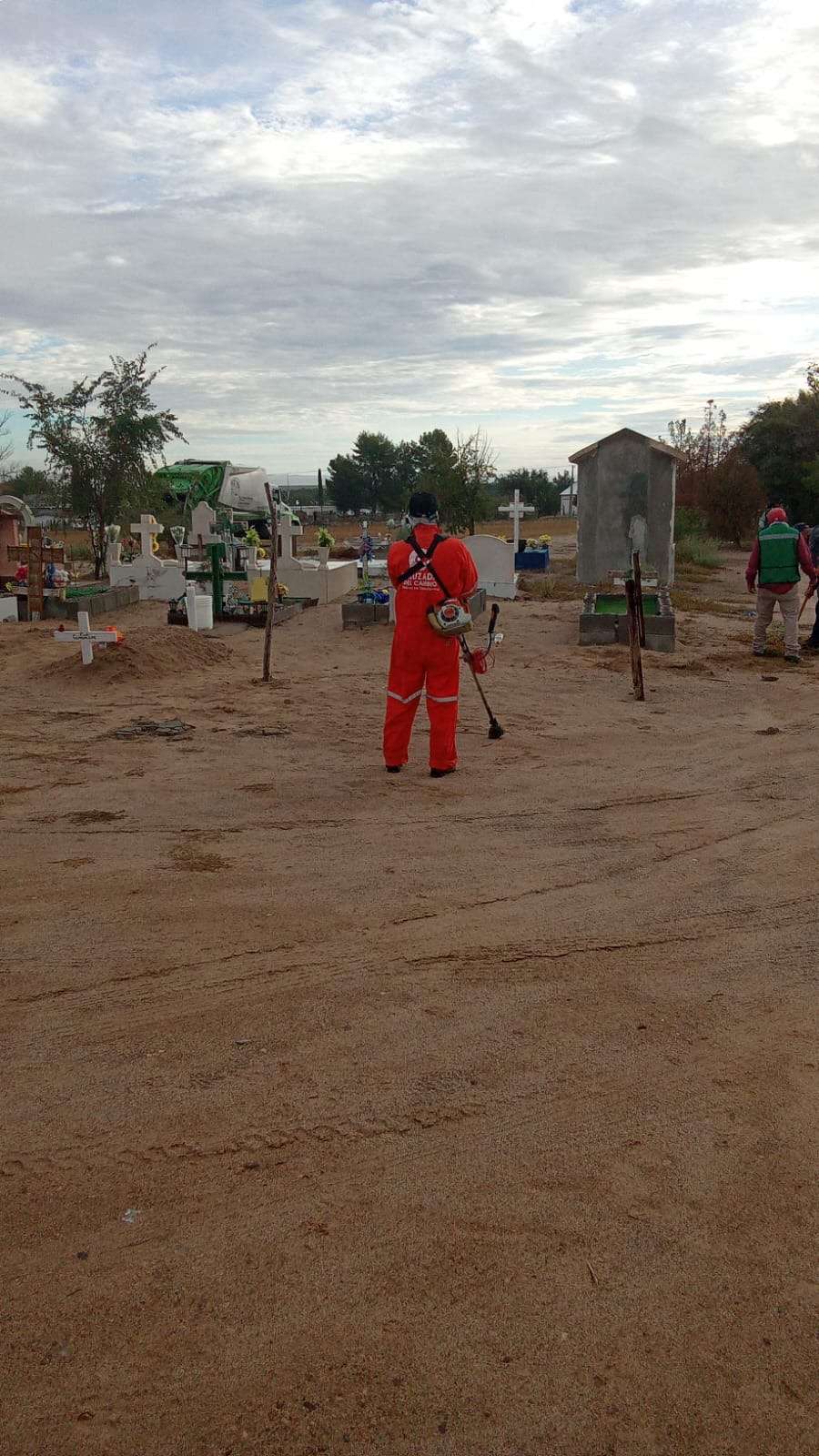 Ciudad Juárez.- Con el propósito de mantener en buenas condiciones los panteones municipales ante la próxima celebración del Día de Muertos, personal de la Dirección de Limpia realiza labores intensivas de limpieza y mantenimiento en los tres cementerios públicos de la ciudad, el Chaveña, Colinas y San Rafael.
