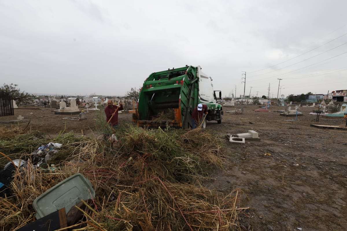 “A lo largo del año tenemos presencia permanente en los tres panteones municipales, pero este año ha sido distinto por la cantidad de lluvia que hemos recibido, que ha sido una gran bendición, aunque también representa trabajo adicional para nosotros”, comentó.