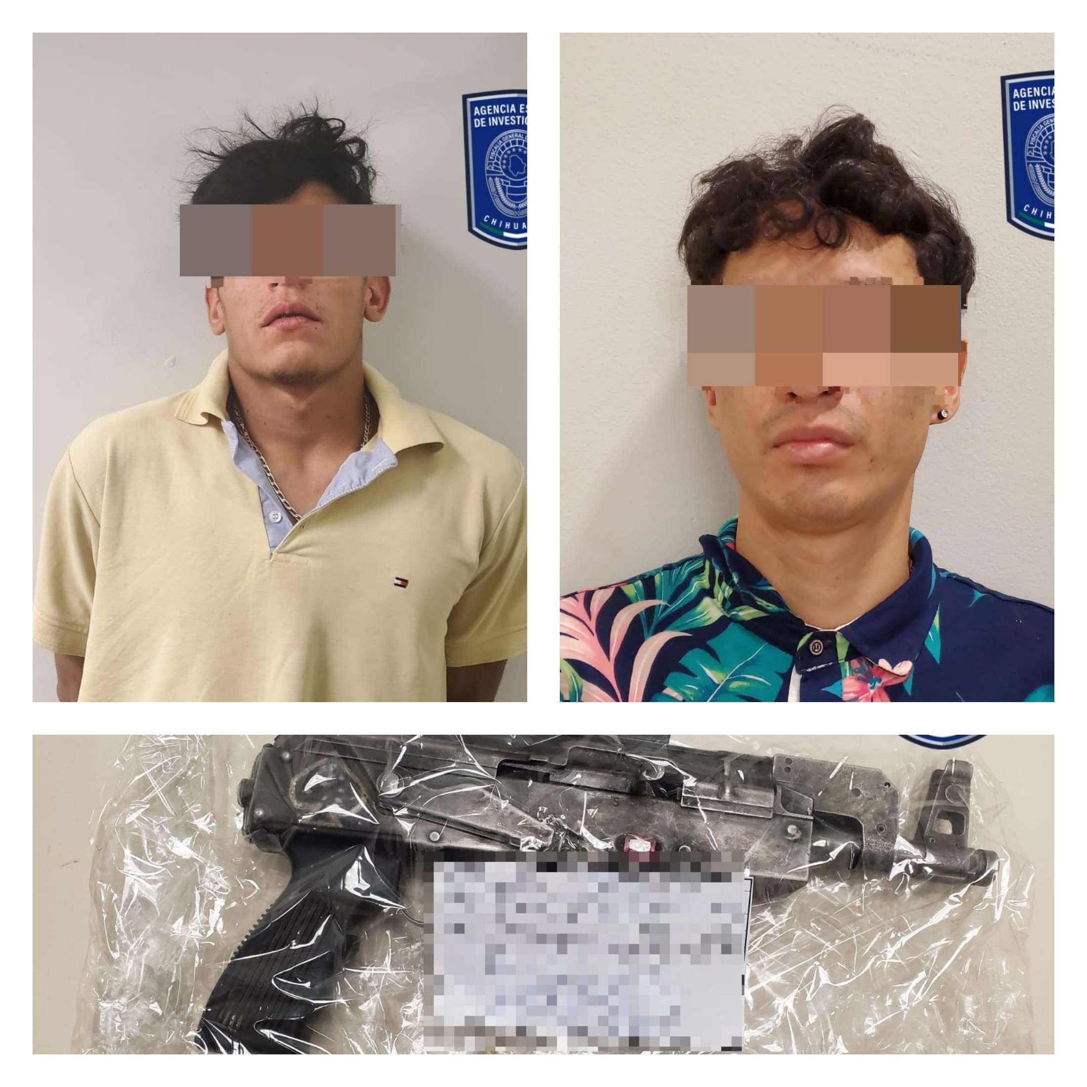 Ciudad Juárez.- Elementos de la Agencia Estatal de Investigación del Grupo de Operaciones Tácticas, detuvieron en flagrancia a dos masculinos por posesión de droga y arma de fuego en la colonia Azteca.