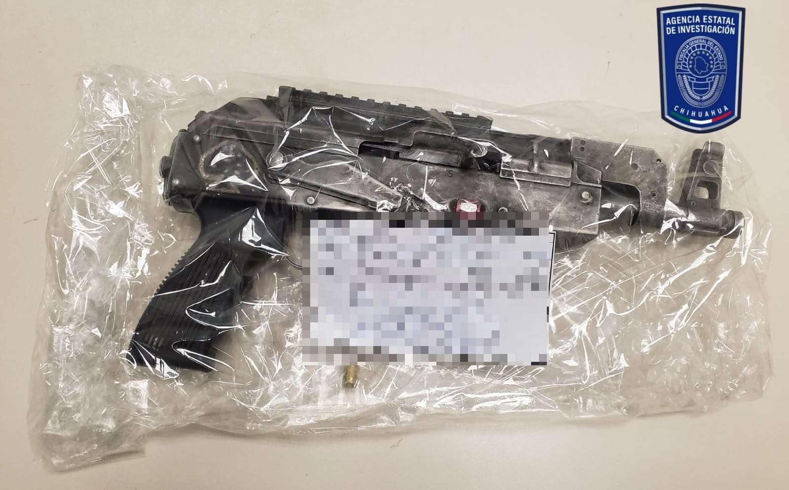 En tanto, dentro del automóvil se encontró, a un costado del asiento del lado del piloto, un arma de fuego tipo fusil, con la leyenda PAK-9, calibre 9 milímetros y un cartucho útil con la leyenda 9mm Luger Blazer.