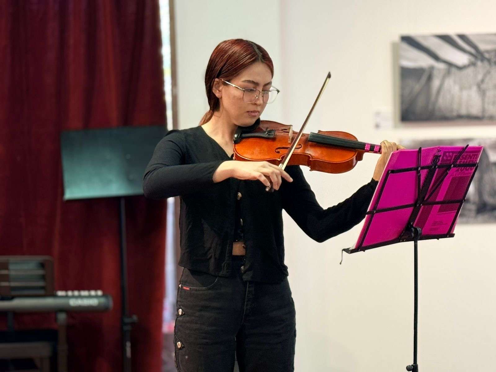 La actividad se realizó el sábado 20 de diciembre y contó con la participación de diez estudiantes de entre 7 y 20 años de edad, quienes ofrecieron una muestra de su talento interpretando diversos instrumentos como violín, piano, arpa, guitarra eléctrica, entre otros, ante la presencia de familiares y acompañantes.
