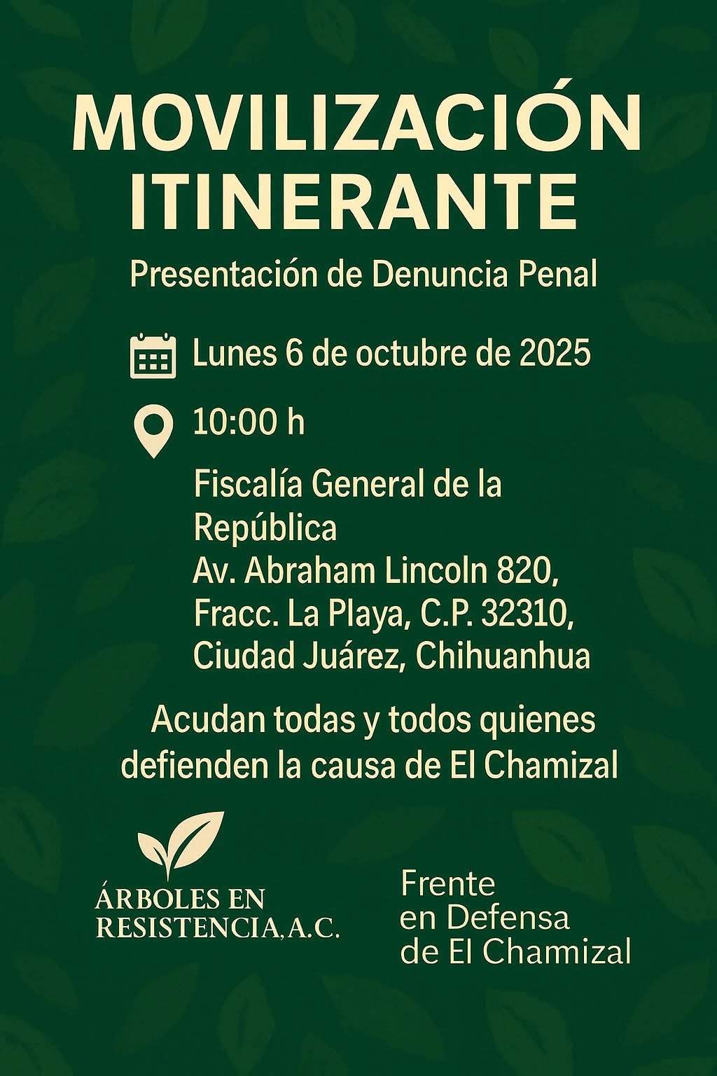 De acuerdo con el comunicado difundido por los colectivos Árboles en Resistencia A.C. y el Frente en Defensa de El Chamizal, la denuncia busca que se realice una investigación federal autónoma que esclarezca los daños y las posibles irregularidades cometidas en el manejo del área protegida.