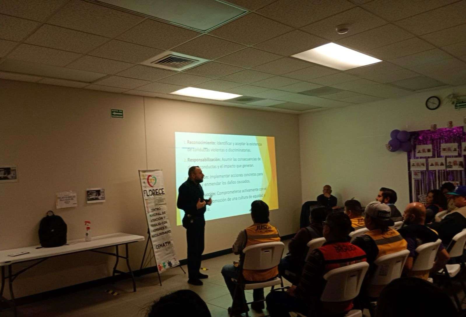 Ciudad Juárez.- Con el objetivo de abordar desde una visión amplia las masculinidades, la Secretaría de Seguridad Pública Municipal a través del Centro Municipal para la Atención y Trabajo con Hombres (CEMATH) llevó a cabo una jornada de sensibilización con colaboradores y colaboradoras de la Empresa Jusda Supply Chain Managment.