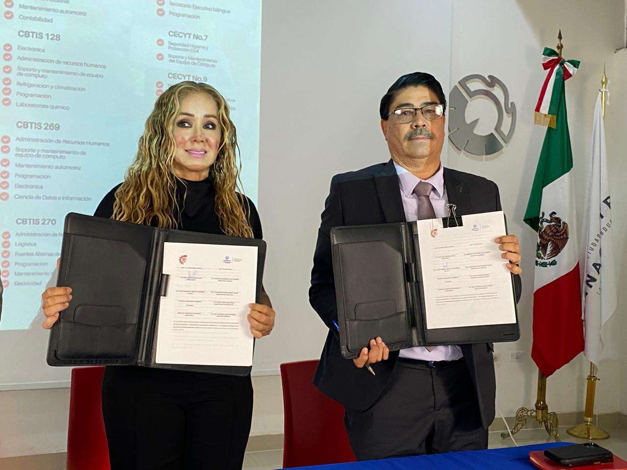 El documento fue signado por Adriana Alejandra Ruíz Ramírez, Directora general CECyTECH en el Estado y Jesús Gerardo Arroyo Gutiérrez, Comisionado responsable de la oficina estatal de los DGTI.