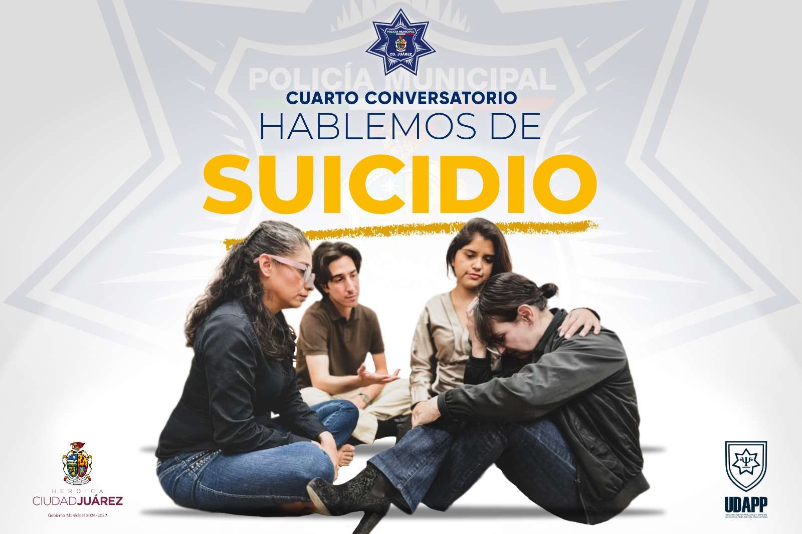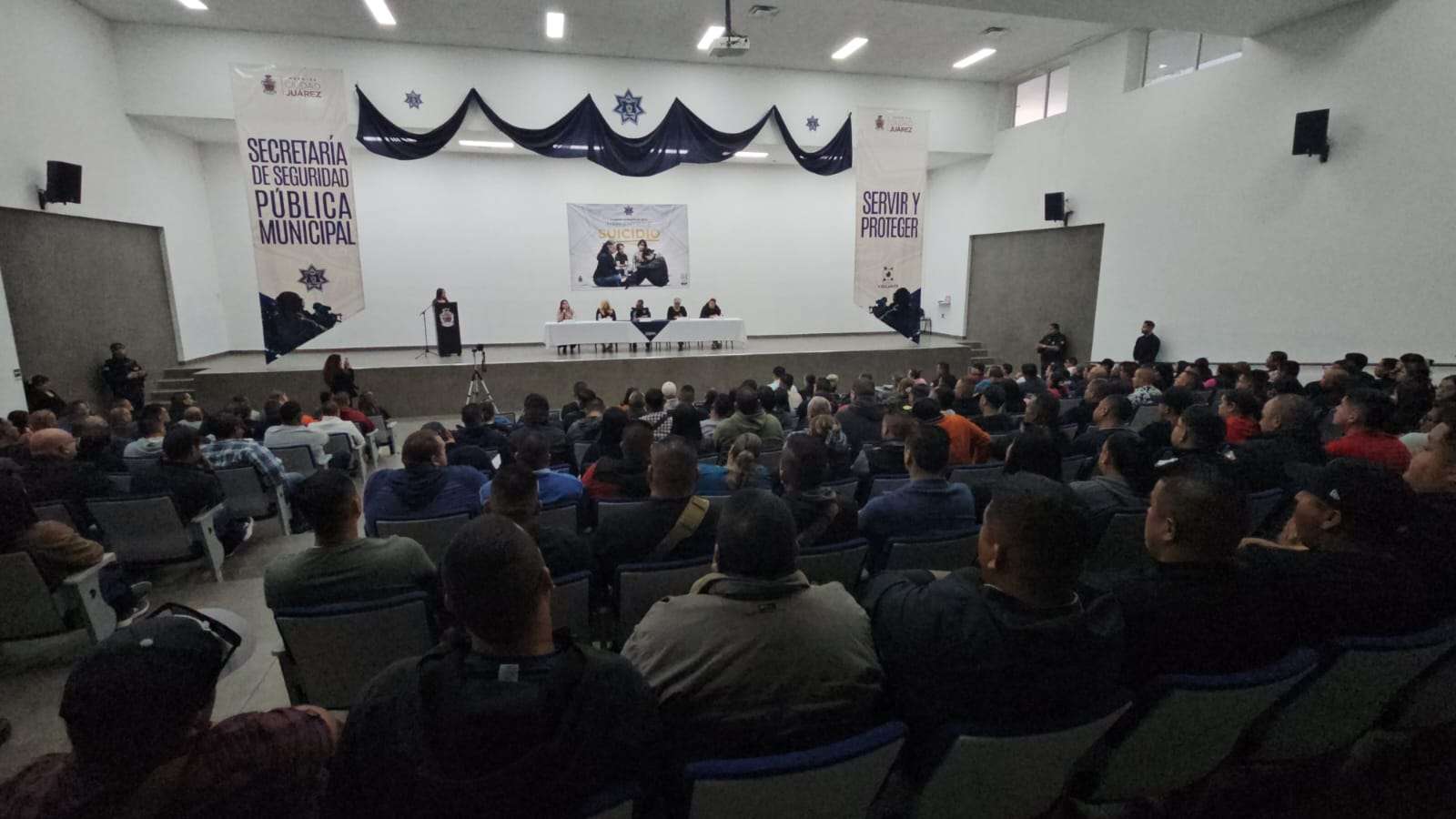 Ciudad Juárez.- La Secretaría de Seguridad Pública Municipal a través de la Unidad Mixta de Defensa Legal y Atención Psicológica para Policías y sus Familias (UDAPP) llevó a cabo la IV edición del Conversatorio “Hablemos de Suicidio”, un espacio de encuentro, reflexión y sensibilización dirigido a 220 elementos de la Secretaría de Seguridad Pública, Coordinación Vial y Protección Civil.
