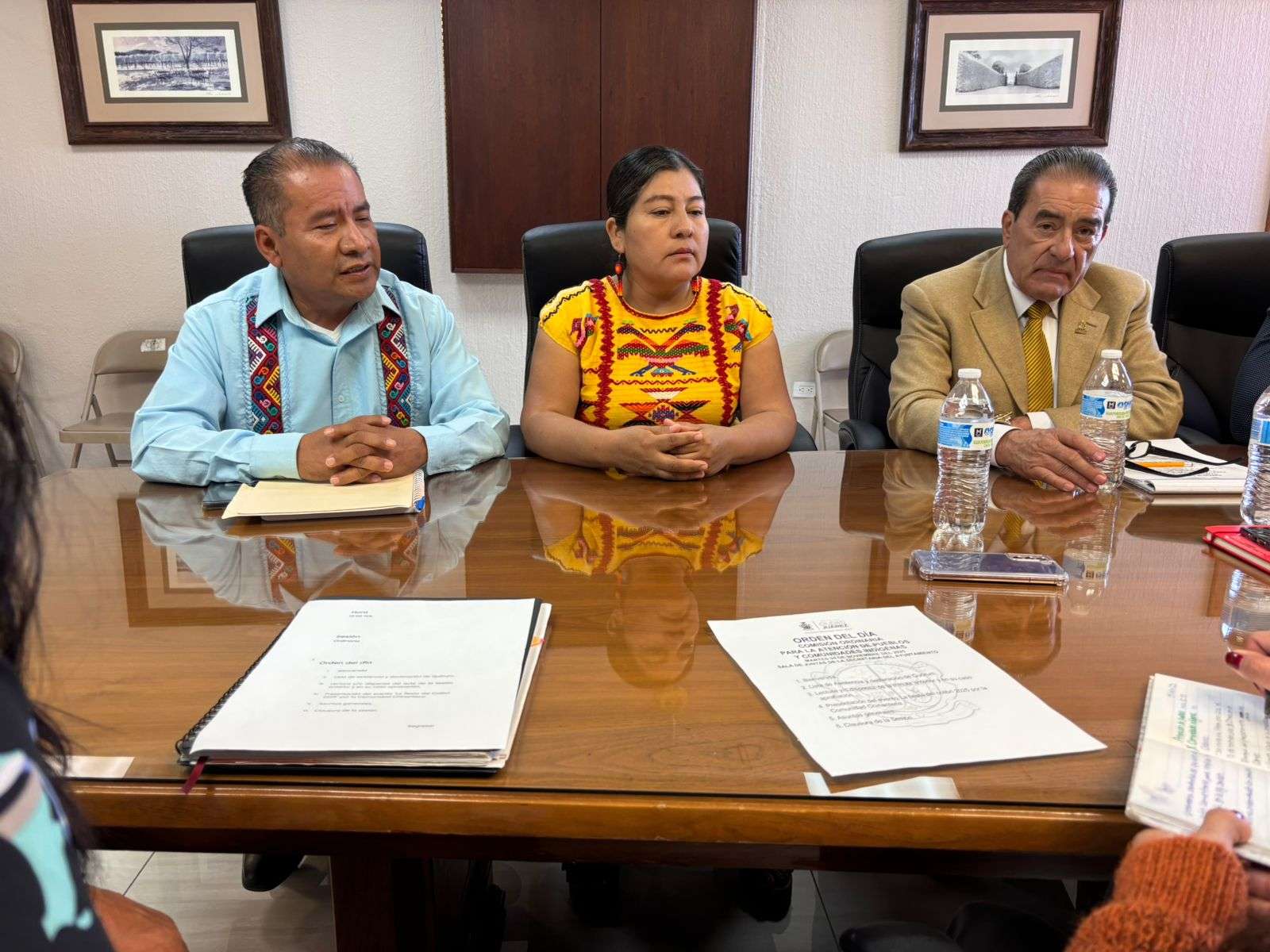La regidora y coordinadora de la Comisión, Mayra Karina Castillo Tapia, así como sus homólogos Pedro Alberto Matus Peña y José Mauricio Padilla, se reunieron con personas que provienen del estado de Oaxaca, quienes les dieron a conocer del evento.