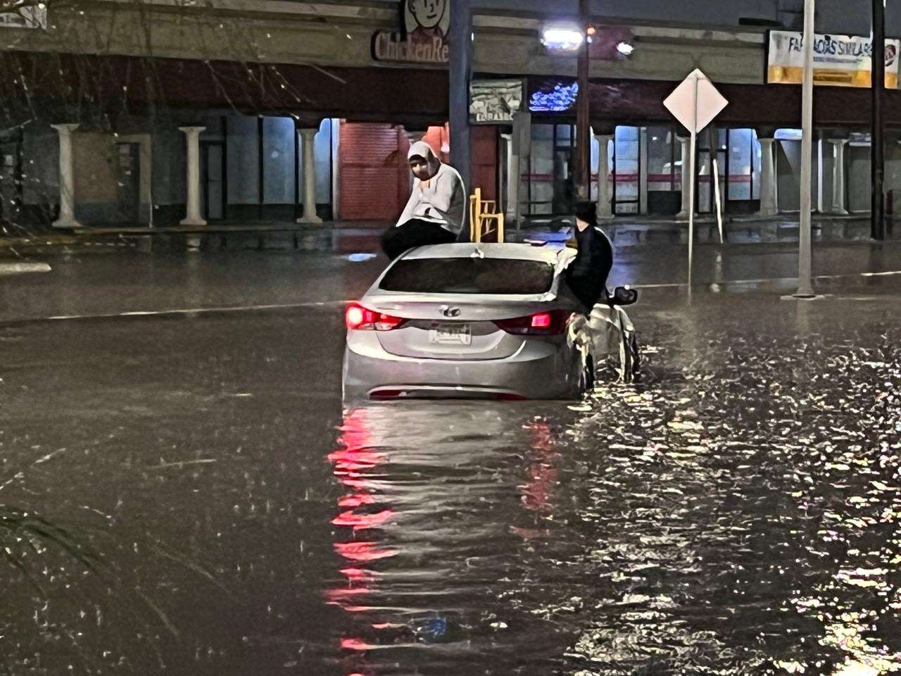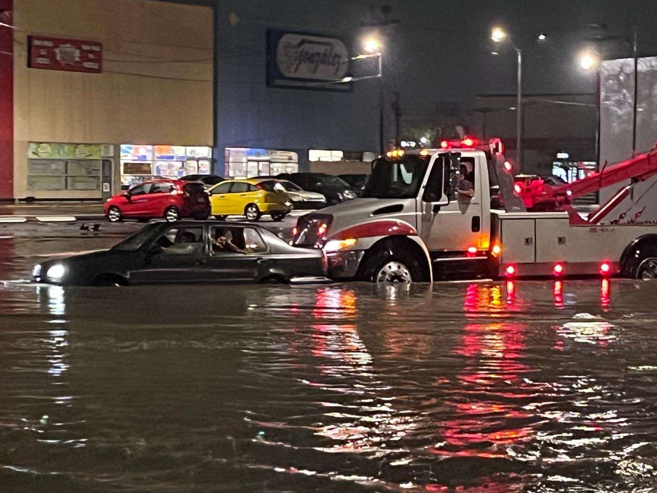 Ciudad Juárez.— Las intensas lluvias registradas durante la tarde y noche de este sábado provocaron severas inundaciones en distintos sectores de la ciudad, dejando varios vehículos varados y daños materiales.