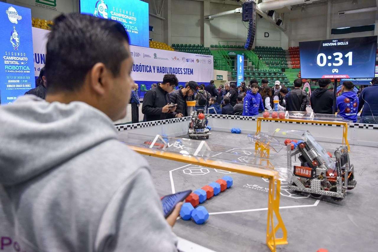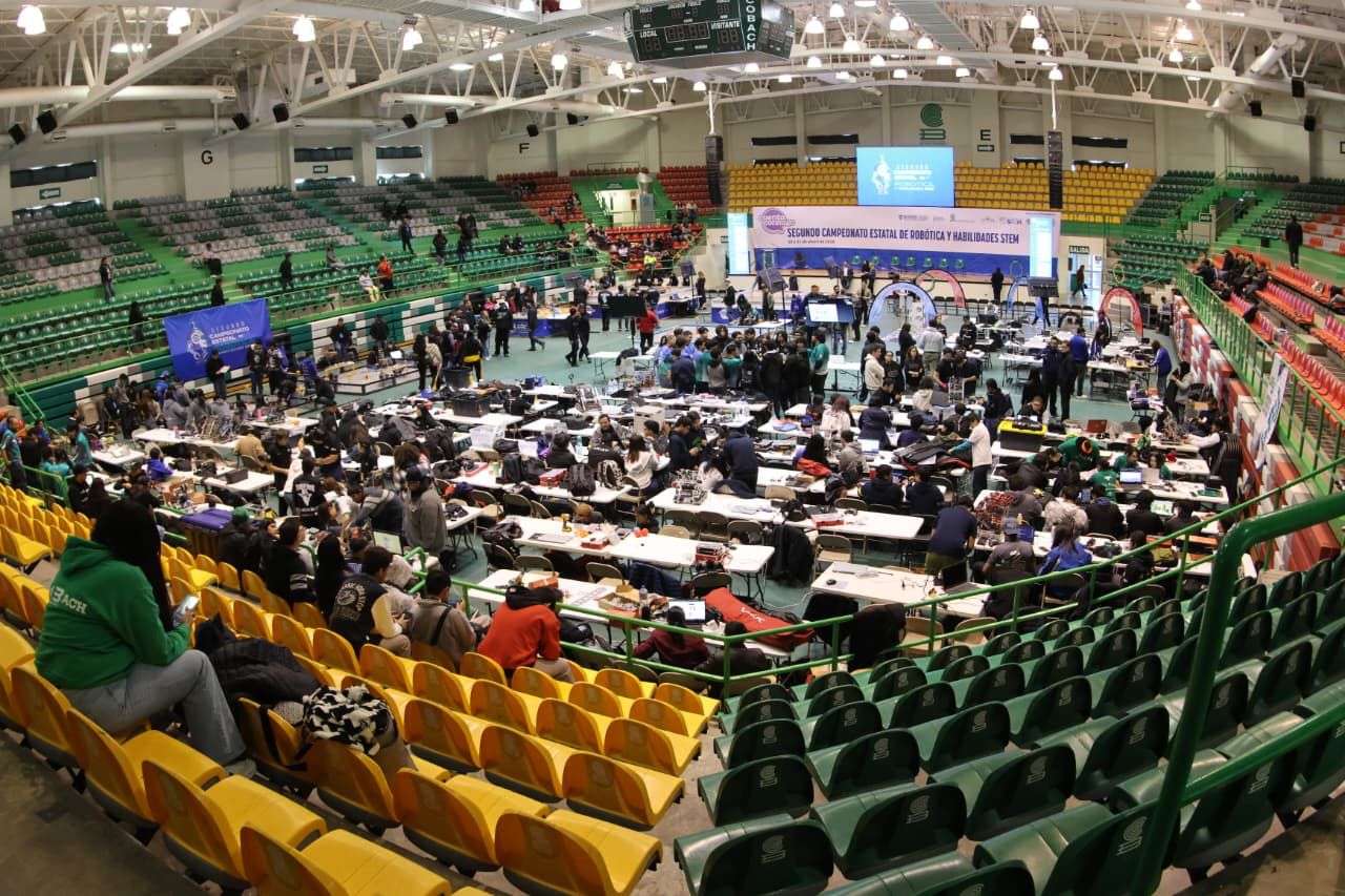 Juárez, Chih.- El Colegio de Bachilleres del Estado de Chihuahua (Cobach) reunió a más de 500 estudiantes, durante el Segundo Campeonato Estatal de Robótica y Habilidades STEM Chihuahua, celebrado en Ciudad Juárez.