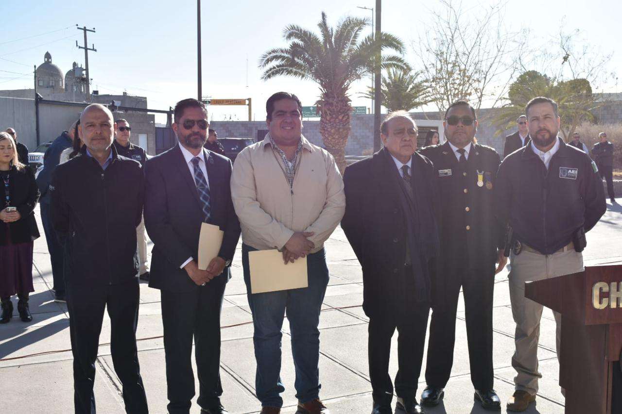La Agencia Estatal de Investigación (AEI), a través del Grupo de Orientación Escolar Chihuahuense (GOECHI), llevó a cabo el evento cívico, con la participación de la banda de guerra y escolta de la Coordinación de Seguridad Vial del Municipio.