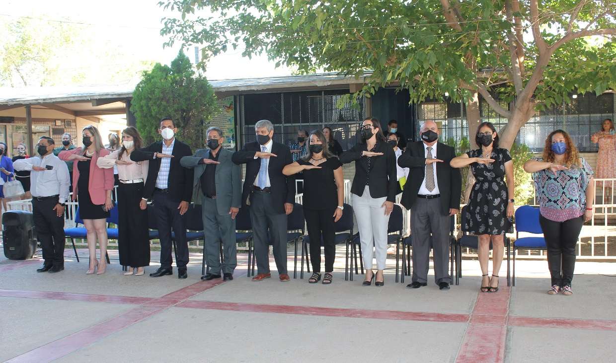 Juárez.- Autoridades educativas encabezadas dieron arranque oficial al ciclo escolar 2022-2023 de Educación Básica en Ciudad Juárez, durante una ceremonia que se efectuó en las instalaciones de la Escuela Secundaria Estatal No.3002 de la colonia Ex Hipódromo.