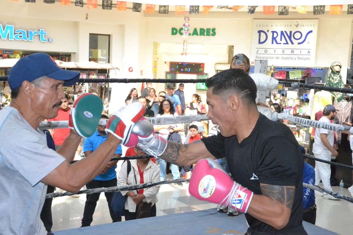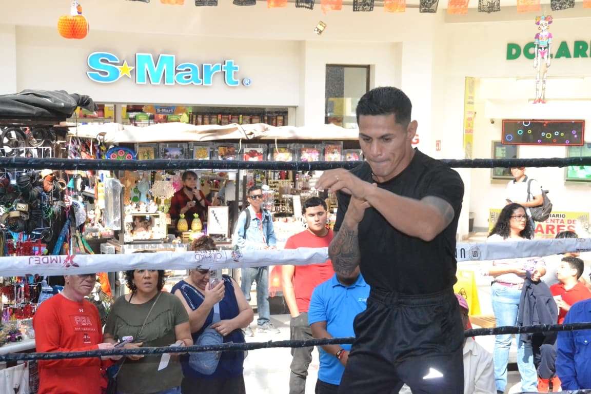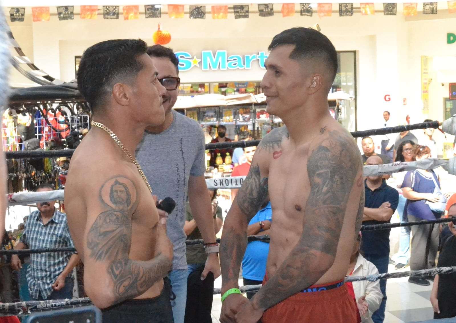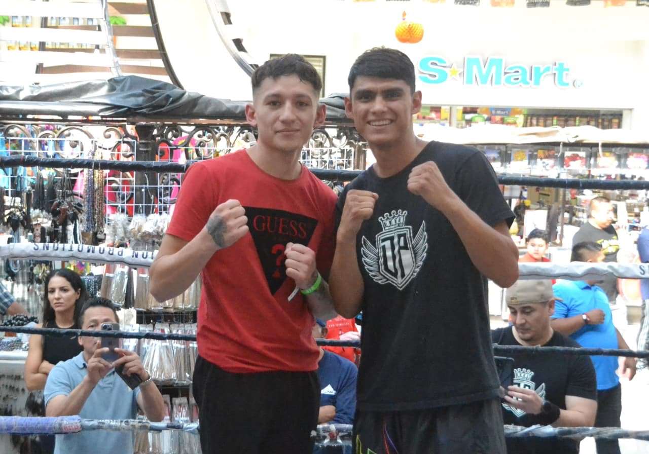 La plaza comercial, ubicada en el Pronaf, reunió a los pugilistas que verán acción el sábado, en el Gimnasio Universitario de la UACJ, a partir de las 6:00 de la tarde.