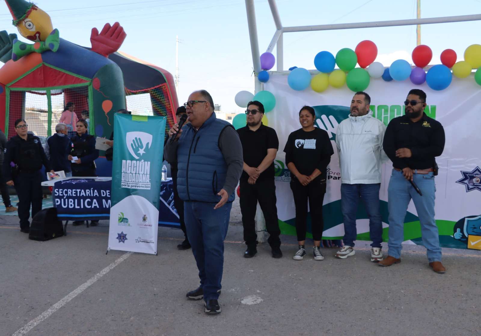 Ciudad Juárez.- Como parte del proyecto “Acción Ciudadana: Policía de Proximidad y Comunidad por la Prevención”, la Secretaría de Seguridad Pública Municipal, a través de la Dirección de Prevención Social, participó en la Feria Comunitaria “Día de la Familia”, en coordinación con Gobierno del Estado, CIDESES y Presupuesto Participativo.