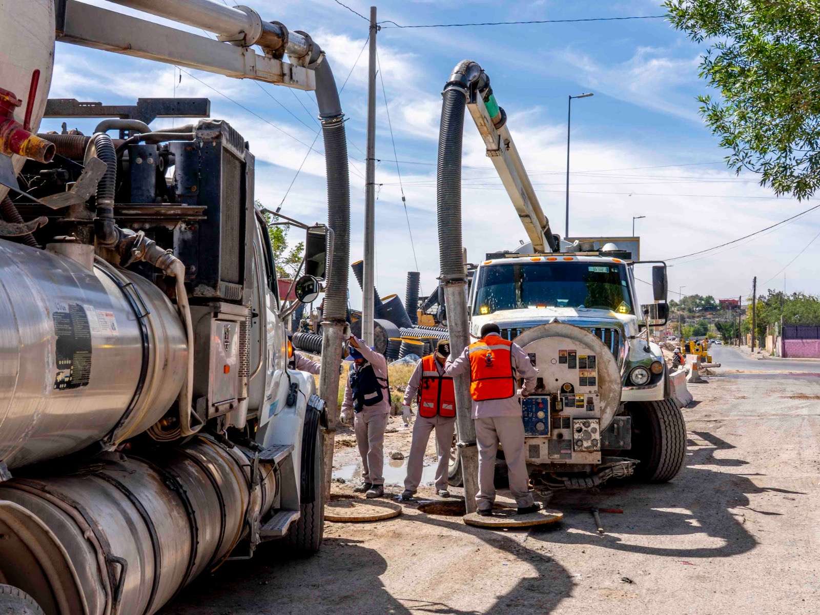 Ciudad Juárez.- La Junta de Agua y Saneamiento de Juárez (JMAS) continua con el mantenimiento preventivo del colector Nadadores en la Colonia Sara Lugo y Ladrillera para asegurar el correcto funcionamiento del sistema de drenaje en la zona.