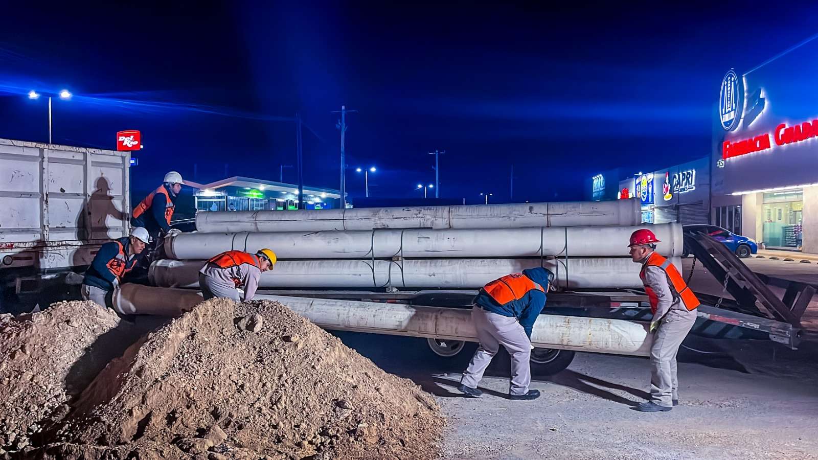 Ciudad Juárez.- Como parte del proyecto de sectorización, la Junta de Agua y Saneamiento de Juárez (JMAS) trabajó por la noche de este jueves en la instalación de tubería nueva de 12 pulgadas, la cual conectará dos pozos ubicados en Parajes de Oriente con el Tanque Superficial San Francisco, la cual brindará mejor suministro del agua en esta zona.