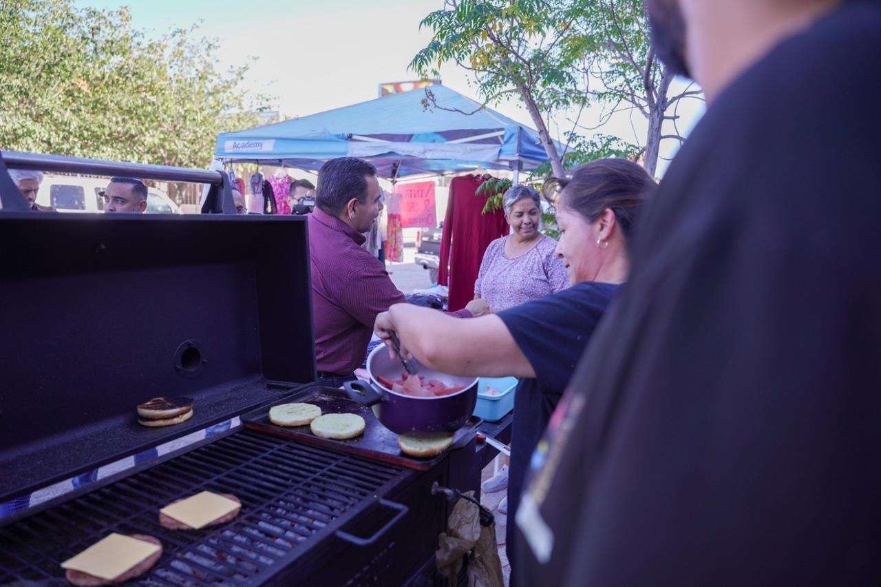 Ciudad Juárez.- Esta tarde el Presidente Municipal, Cruz Pérez Cuéllar, acudió para acompañar y solidarizarse en el evento con causa Hamburguesada Silviatón, que busca recaudar fondos para la cirugía de seno de la señora Silvia López.