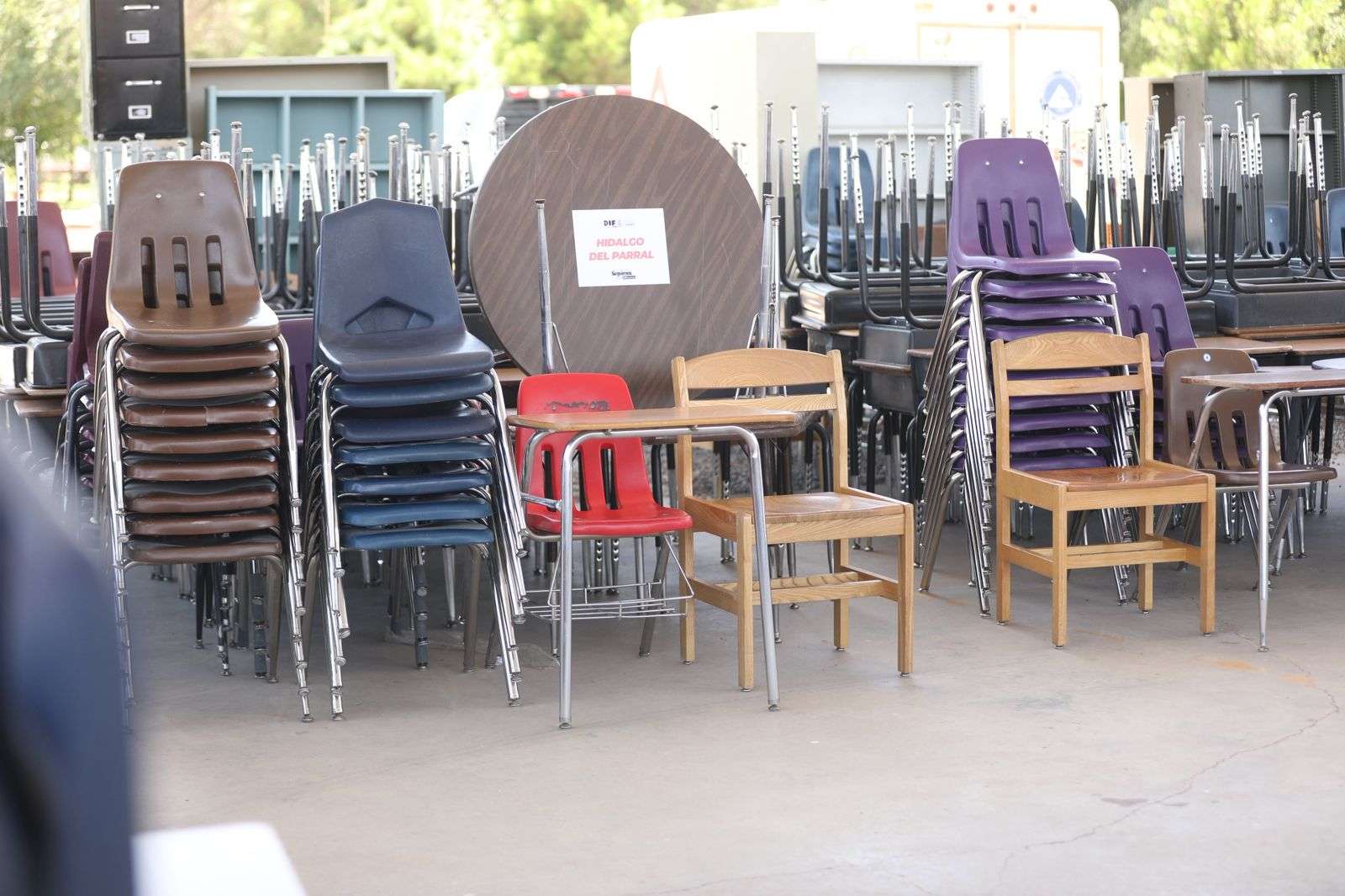 Ciudad Juárez.- La Asociación Civil Más x Chihuahua donó este día mobiliario escolar al Sistema para el Desarrollo Integral de la Familia del Municipio de Juárez, y éste lo entregará a los DIF de otros municipios de la entidad, algunos cercanos como Ahumada y otros retirados como Hidalgo del Parral.