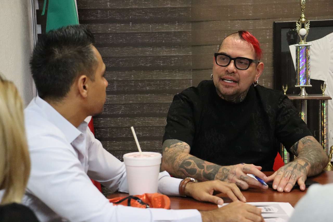Ciudad Juárez.- El luchador juarense José Julio Pacheco “Pagano”, visitó al director del Instituto Municipal de Deporte y Cultura Física de Juárez, Juan Carlos Escalante, para entregarle un reconocimiento por su dedicación al deporte, en especial a la lucha libre.