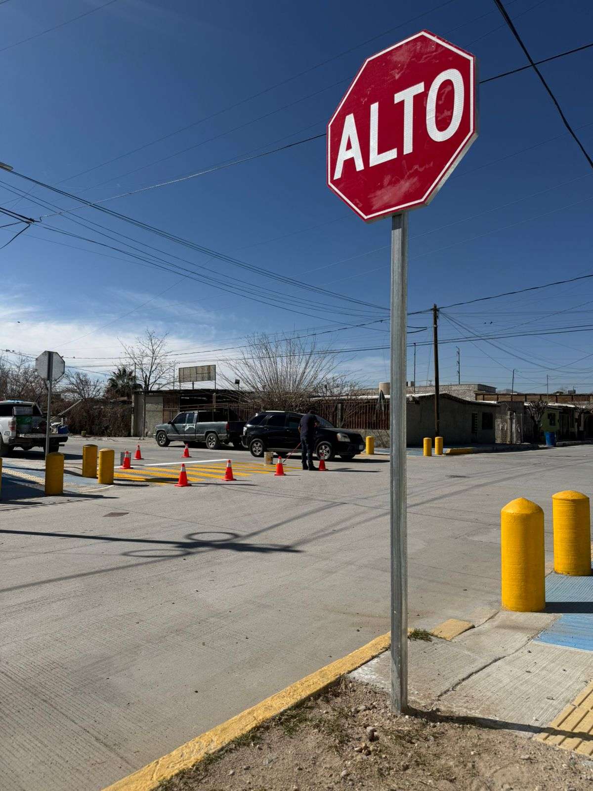 Ciudad Juárrz.- La Coordinación General de Seguridad Vial, a través del área de Control de Tráfico, continúa con las acciones para mejorar la movilidad y proteger a peatones y conductores mediante trabajos de señalización y pintura vial en distintos puntos de la ciudad.