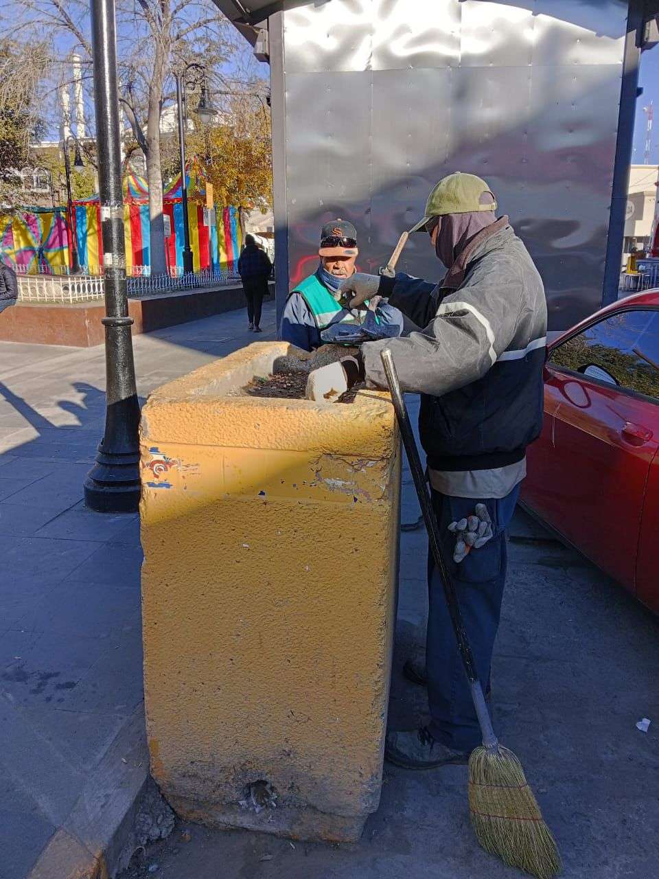Ciudad Juárez.- La Dirección de Limpia refuerza esta semana las labores de limpieza en la Zona Centro, debido a la alta afluencia de visitantes registrada durante las festividades por el aniversario de la ciudad ayer 8 de diciembre y por los preparativos para la celebración del Día de la Virgen de Guadalupe, que tendrá lugar a partir de este jueves.