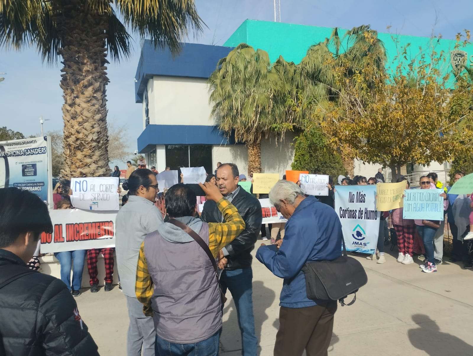 Ciudad Juárez.- El regidor Pedro Matus Peña, dirigente del Partido del Trabajo, encabezó está mañana una manifestación en las oficinas centrales de la Junta Municipal de Agua y Saneamiento (JMAS) para pronunciarse en contra de los aumentos al agua y defender el aumento al Predial.