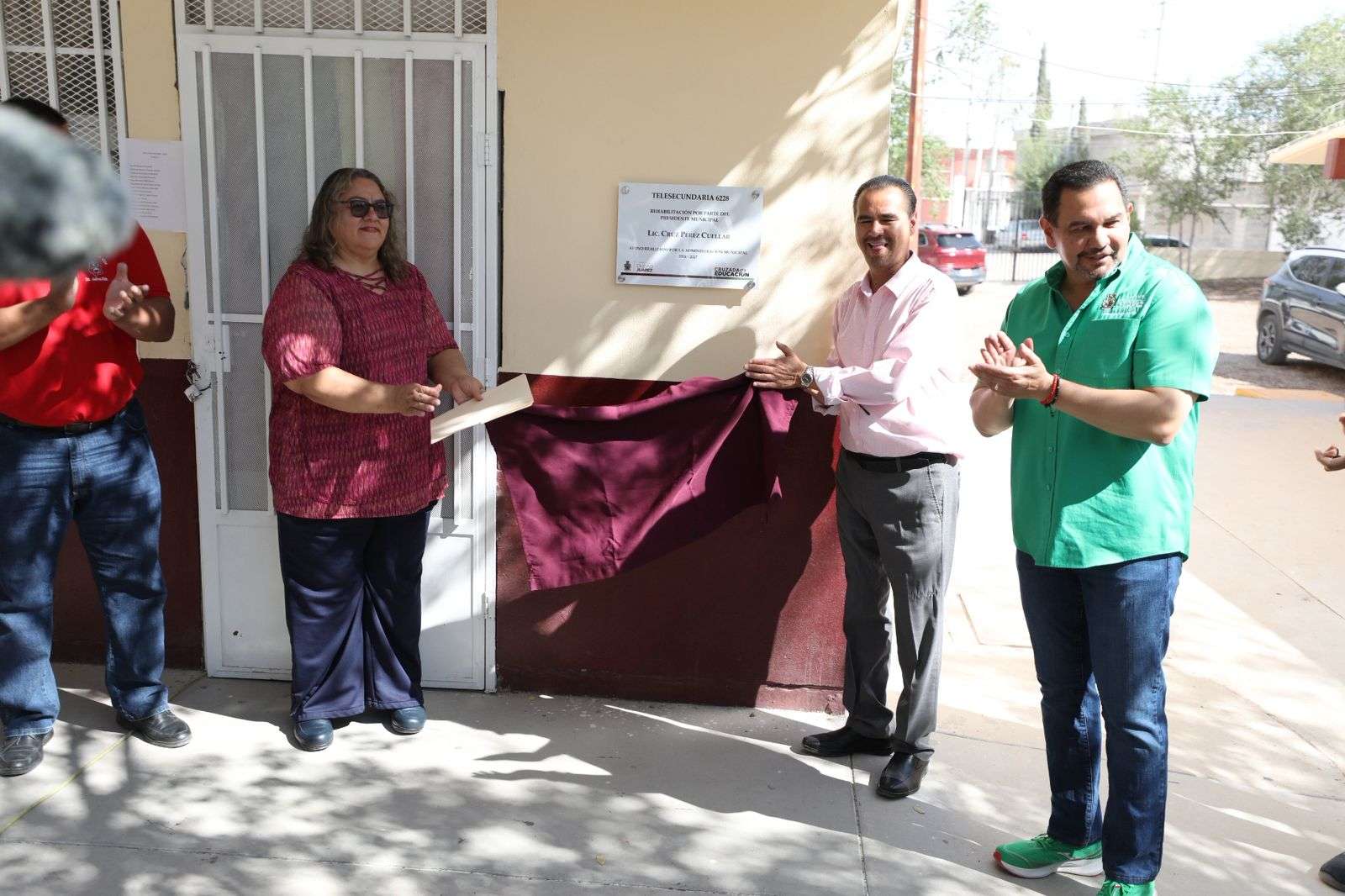 En el evento estuvieron la directora de la Telesecundaria, Cristina Rubio Molina, así como Miguel Ángel Macías, de la Oficina Administrativa de la Coordinadora Educativa Zona Norte; el director de Educación del Municipio, Guillermo Alvídrez; el coordinador de Infraestructura Educativa, Ismael Rueda Fernández, el regidor Jorge Marcial Bueno Quiroz y la Síndica Municipal, Ana Carmen Estrada.