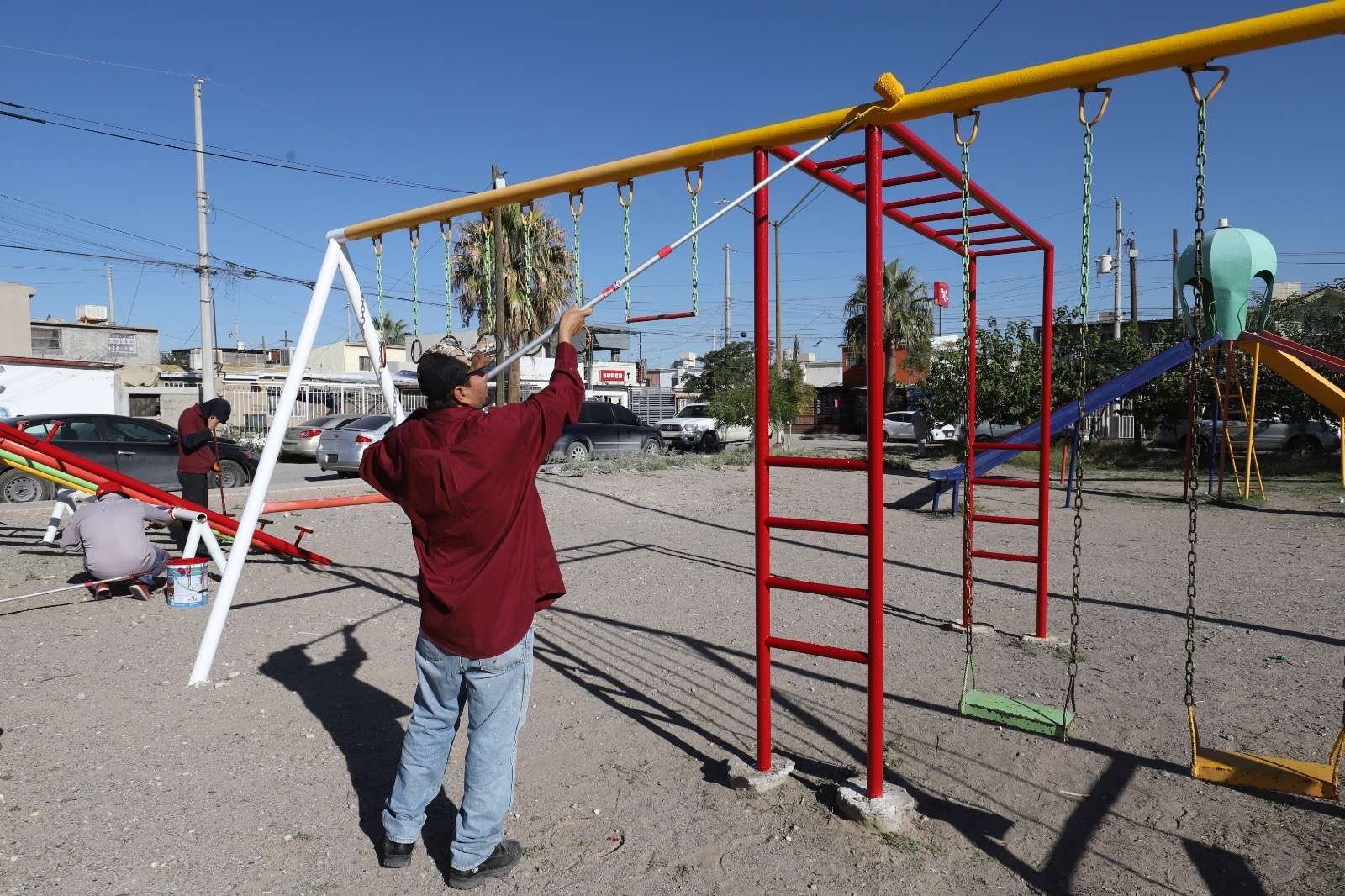 Ciudad Juárez.- La Dirección de Parques y Jardines llevó a cabo labores de limpieza y pintura de juegos infantiles en el parque Gladiolas, ubicado en el Fraccionamiento Prados de Salvárcar, en las calles Michoacán y Violetas.