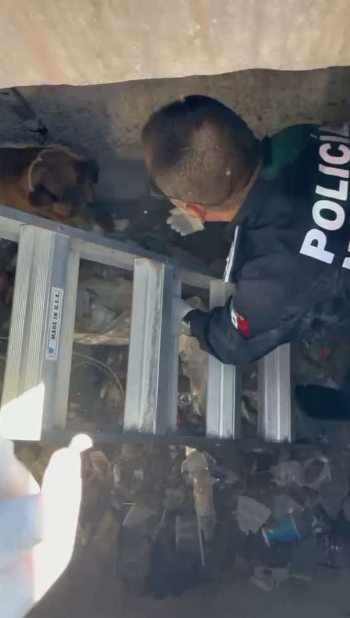 Con profesionalismo y empatía, los elementos uniformados utilizaron una escalera para descender al fondo de la estructura, llevando consigo agua y croquetas para ganar la confianza del animal y facilitar su rescate sin que sufriera daños, tras los esfuerzos, se logró extraer al can con éxito, asegurando su bienestar.