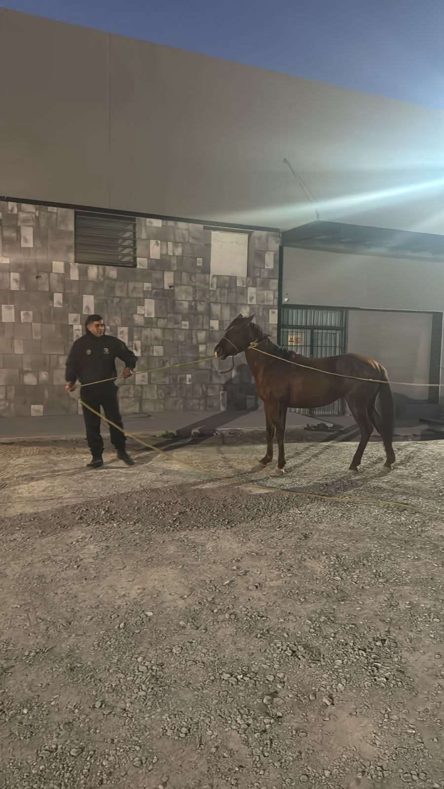 Al arribar al lugar, se localizó al equino en la calle Manuel Gómez Morín, cruce con El Porvenir, dentro del estacionamiento de un local comercial, procediendo a su captura de manera segura mediante el uso de sogas, con apoyo de un ciudadano que lo resguardo y la unidad 1099 de la Coordinación General de Seguridad Vial.
