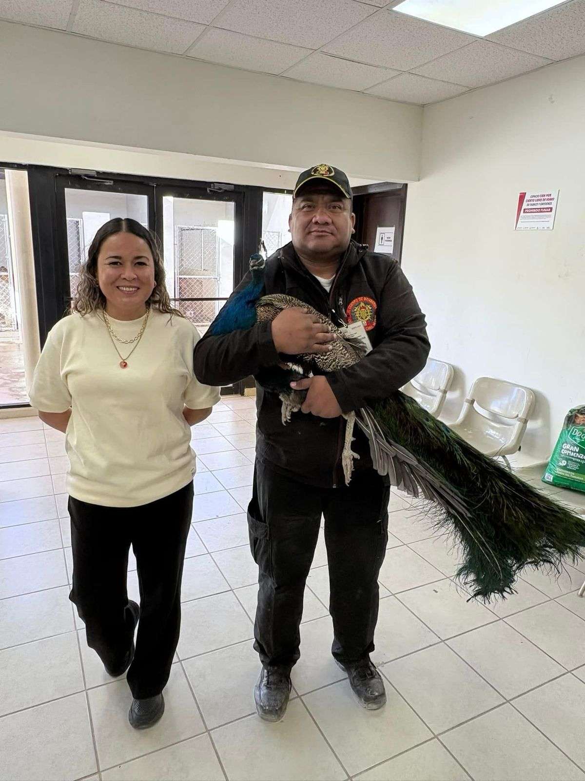 Una vez rescatado, el pavo real fue trasladado a la Dirección de Atención y Bienestar Animal, donde recibirá una evaluación veterinaria y los cuidados necesarios antes de determinar su destino final.