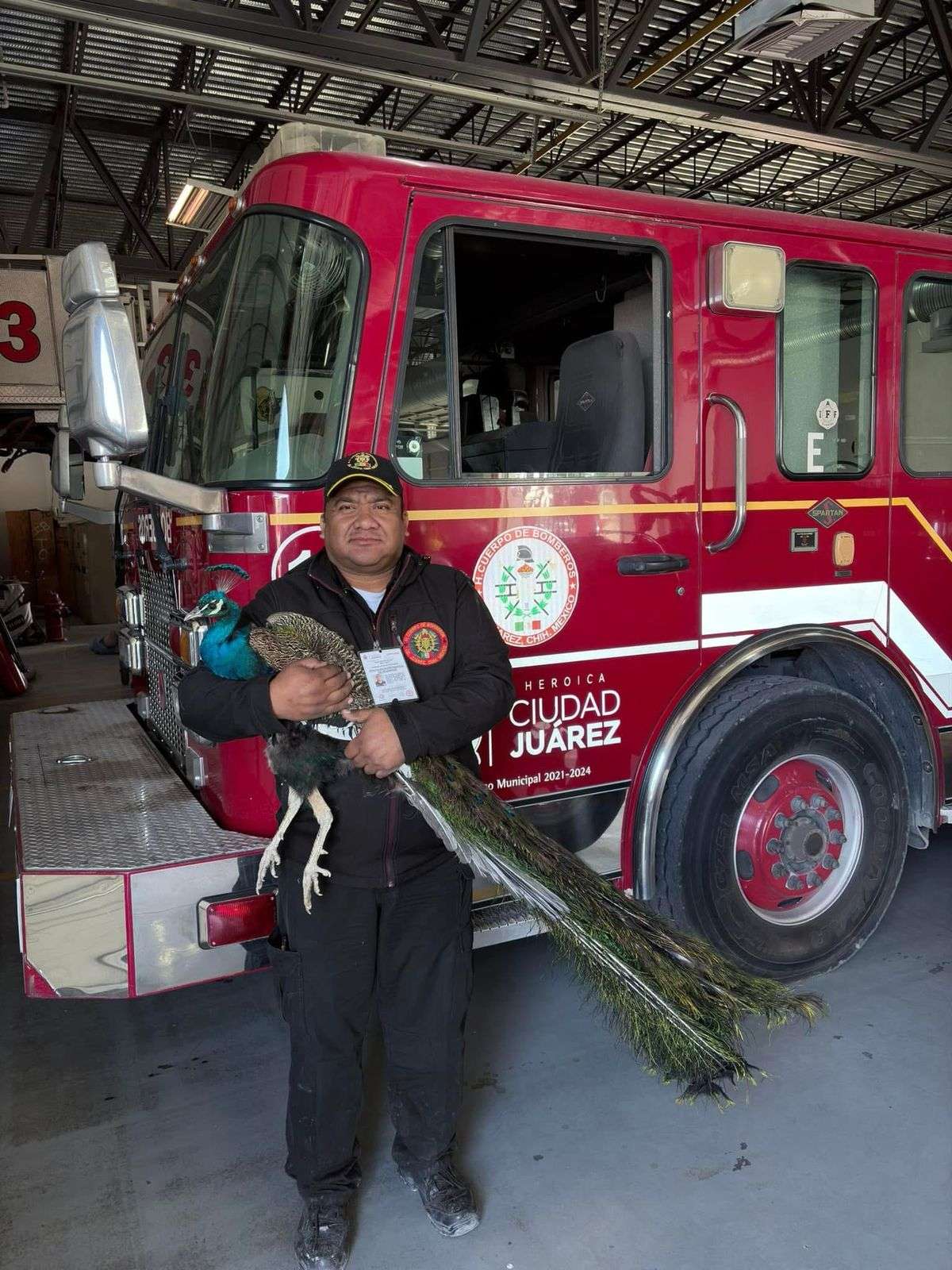 Ciudad Juárez.- Esta mañana, elementos del Departamento de Bomberos atendieron un llamado de emergencia en el que se reportó la presencia de un pavo real que estaba en el cruce de las calles Isaac Newton y 2 de Abril, en la colonia El Futuro.