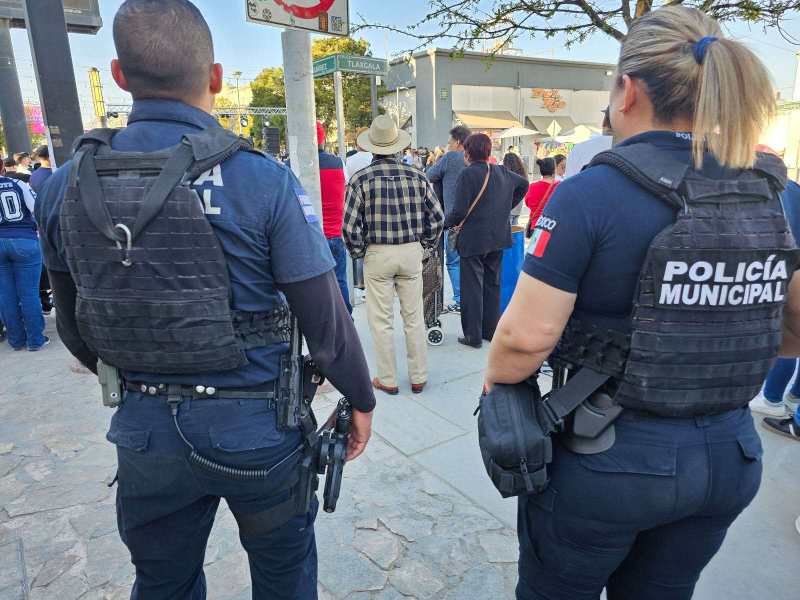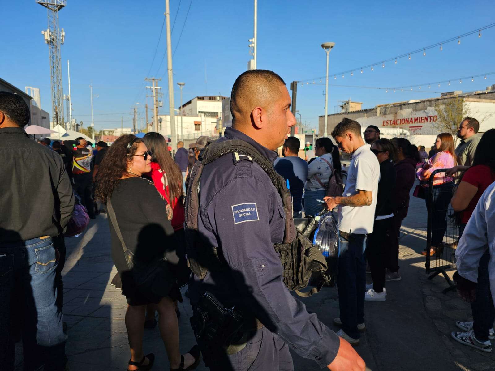 Ciudad Juárez.- Con el objetivo de que el evento se desarrolle de manera segura y los asistentes lo disfruten, policías municipales realizan recorridos pedestres desde la calle Ignacio Mejía hasta la Tlaxcala, tramo que fue cerrado a la circulación vehicular.