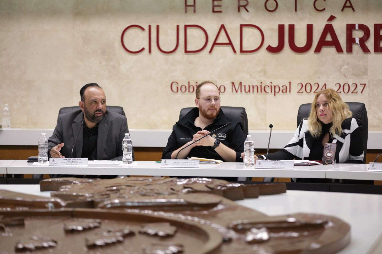 Ciudad Juárez.- Un intenso y ríspido debate se registró durante la reunión previa de Cabildo del Ayuntamiento de Ciudad Juárez, luego de que un exhorto para ampliar el horario del Juárez Bus hasta las 2:00 de la madrugada detonara un enfrentamiento directo entre el regidor del PAN, Alejandro Jiménez, y el regidor de Morena, Antonio Domínguez, con la intervención del secretario del Ayuntamiento, Héctor Rafael Ortiz Orpinel, y la síndica municipal, Ana Estrada.