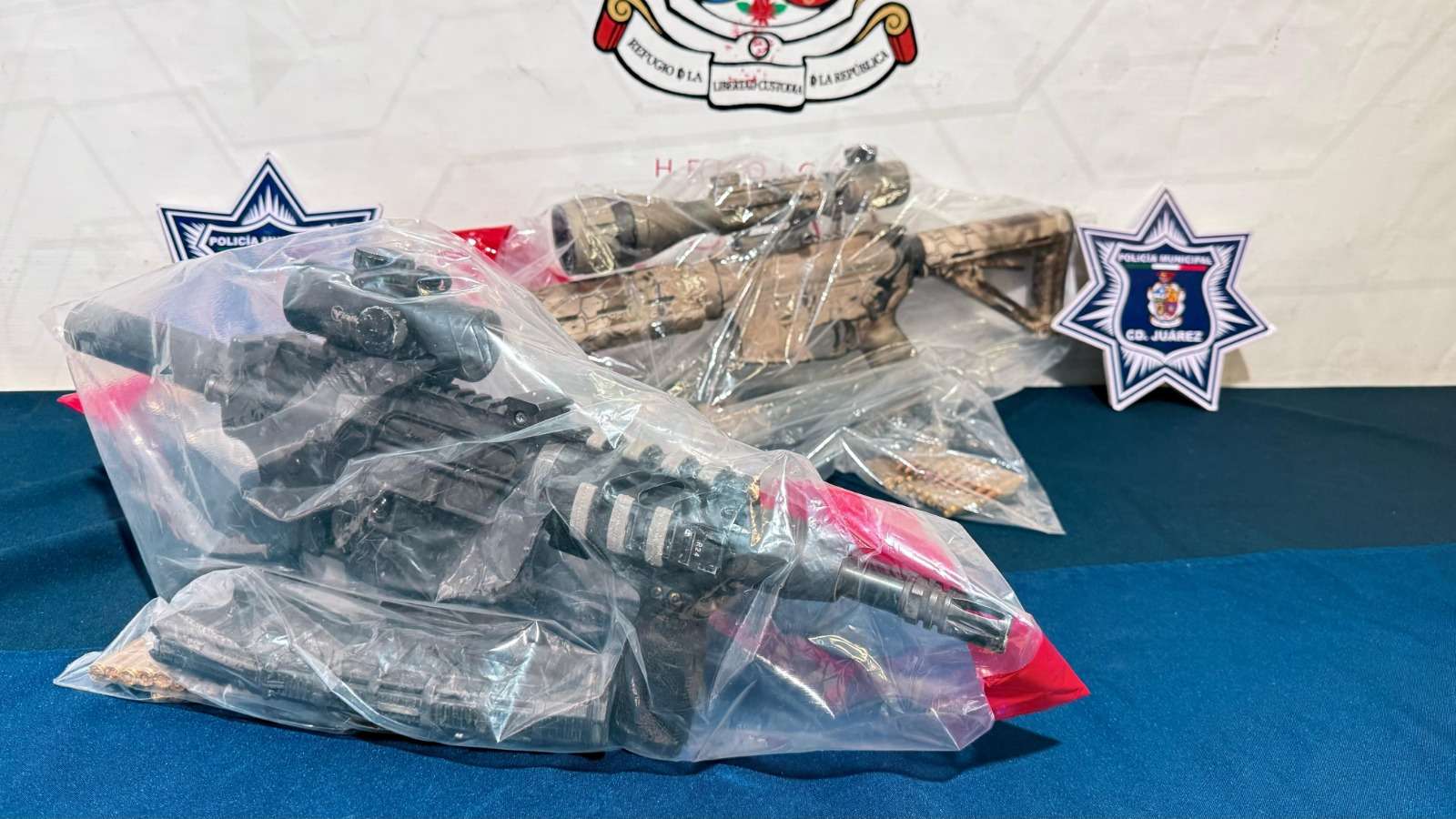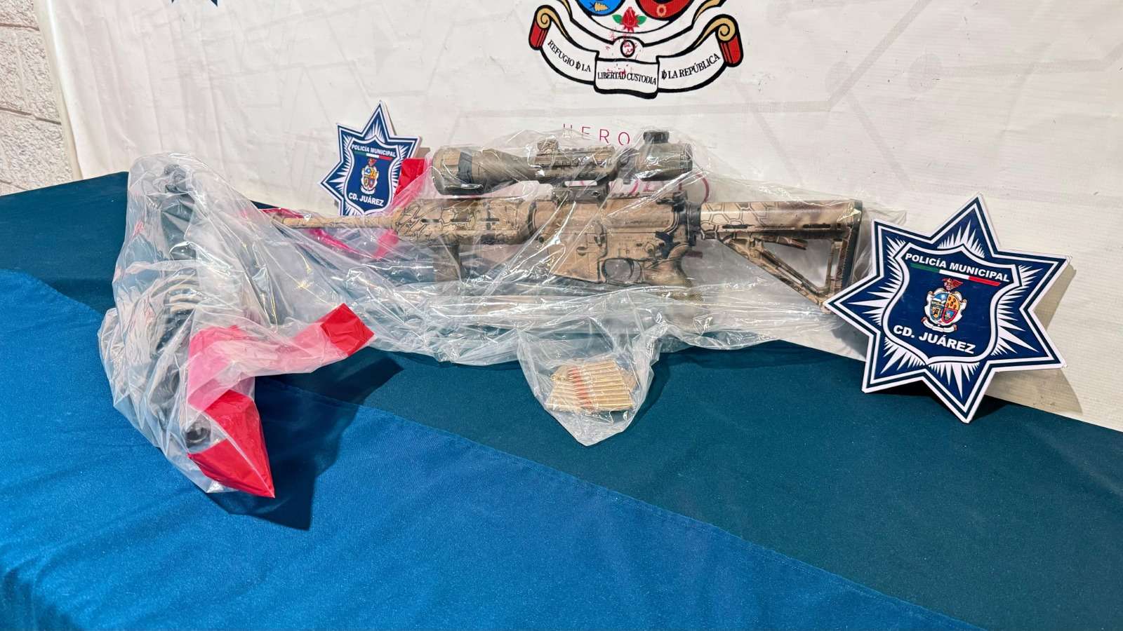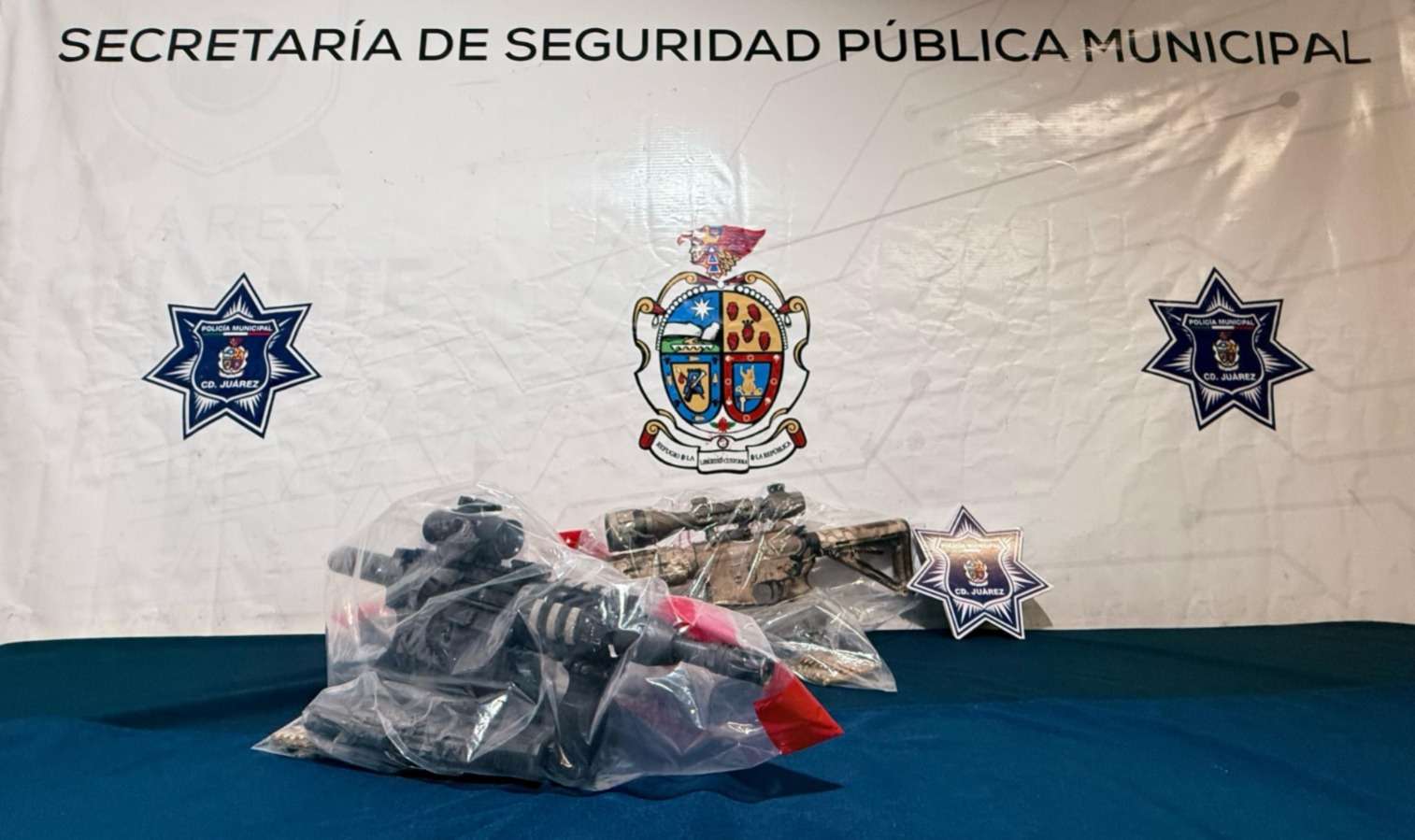 Ciudad Juárez -. Elementos de la Secretaría de Seguridad Pública Municipal arrestaron a Jesús Francisco Daniel A. H. y Silverio M. R., por su presunta responsabilidad en la comisión de delitos contra la ley federal de armas de fuego y explosivos, siendo este último canalizado de emergencia a un hospital en calidad de detenido.