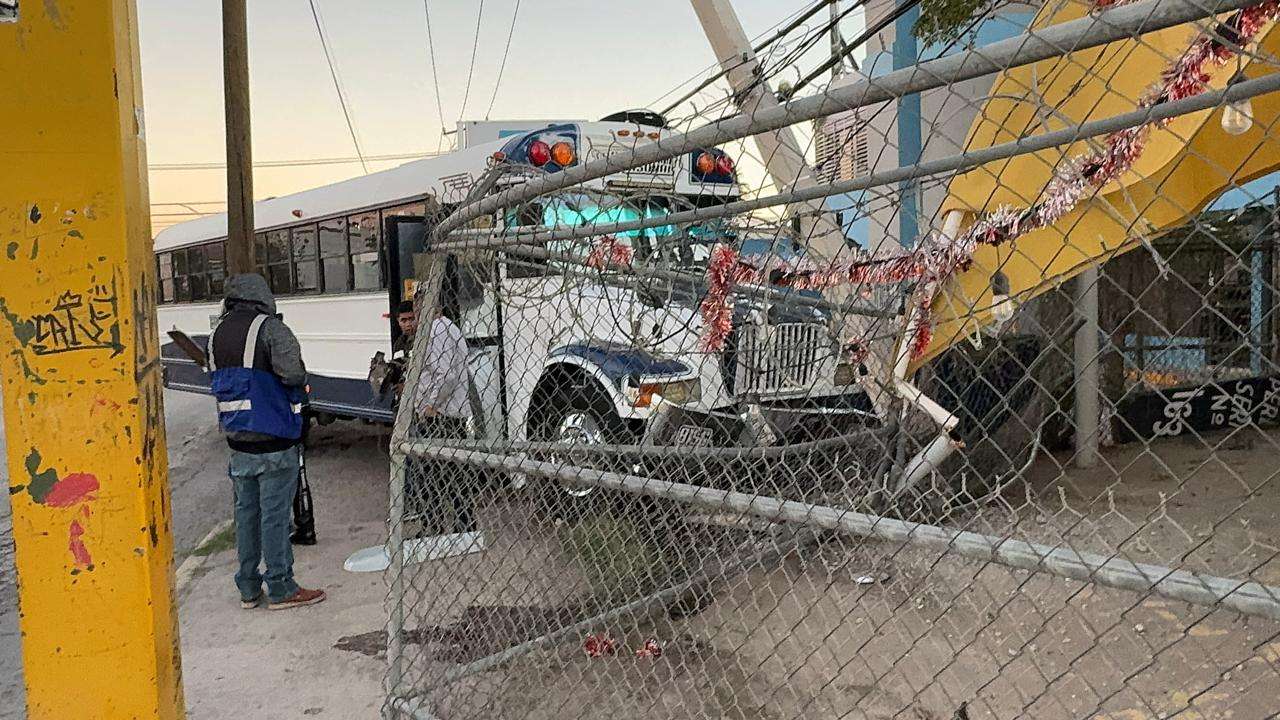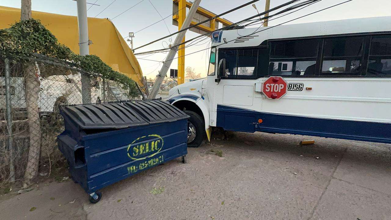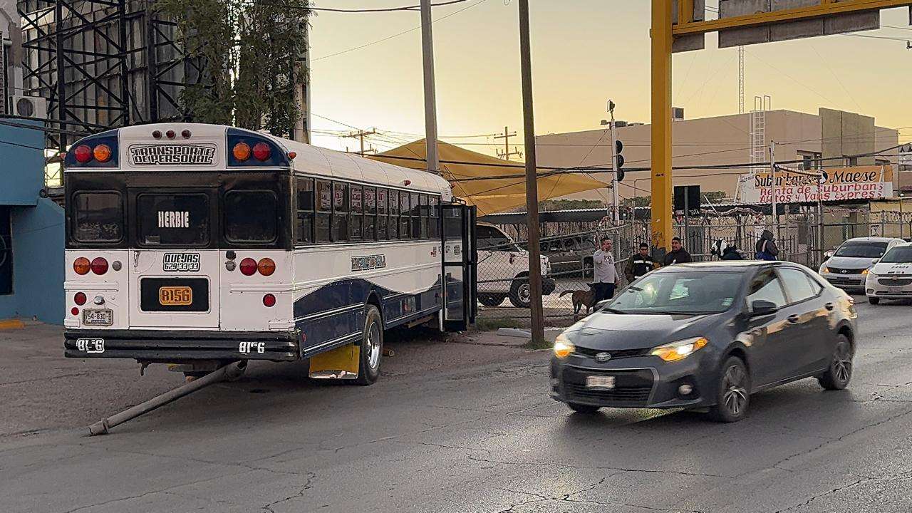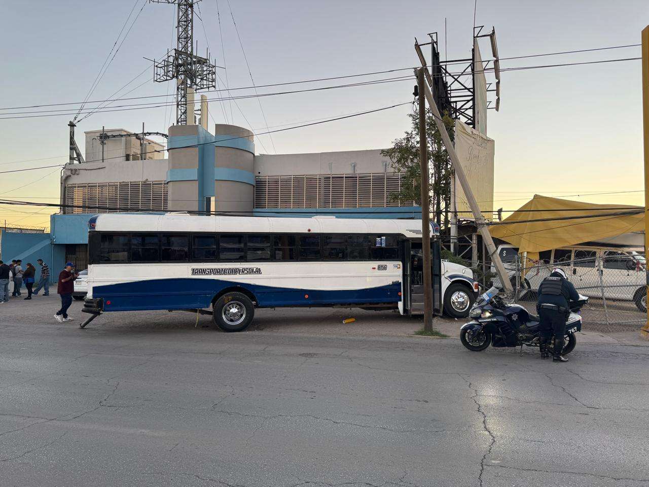 Ciudad Juárez.- Chofer de transporte de personal se quedó dormido al volante y ocasionó accidente en el bulevar Juan Pablo Segundo.
