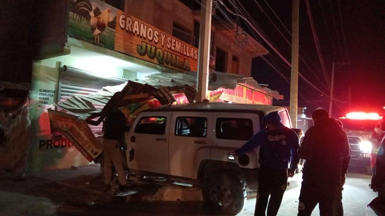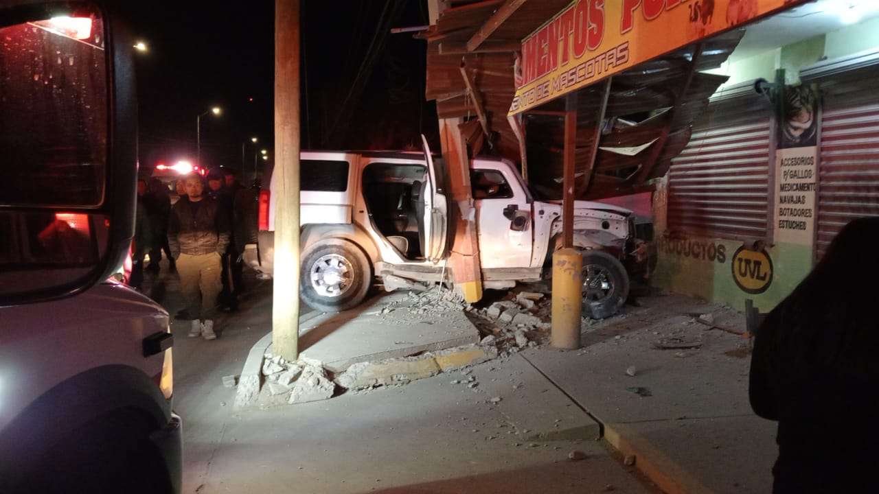 La camioneta se estrelló contra un poste de la Comisión Federal de Electricidad (CFE) y posteriormente contra un tejado de un negocio, lo que causó lesiones a la conductora. Un hombre que la acompañaba resultó ileso.