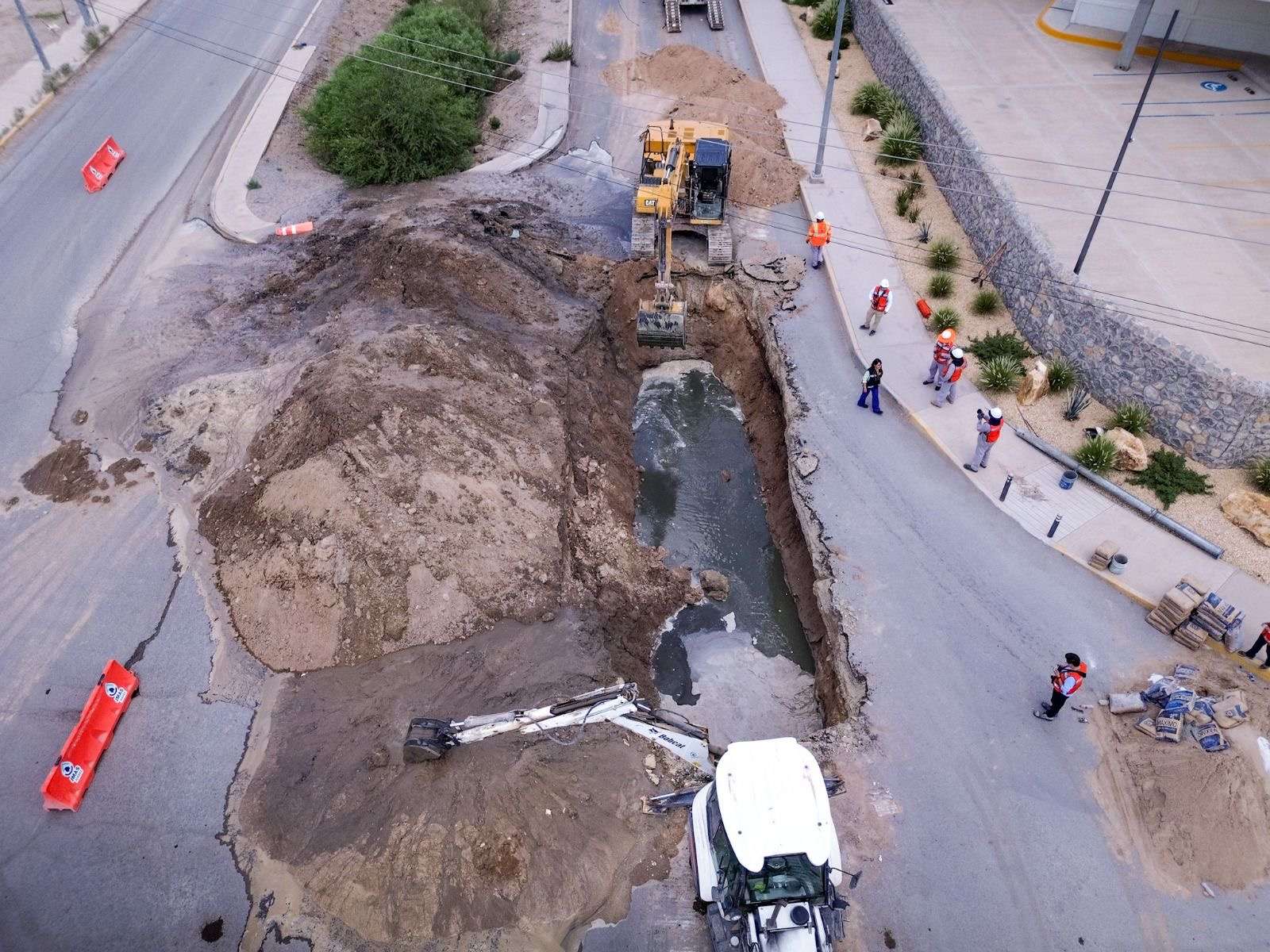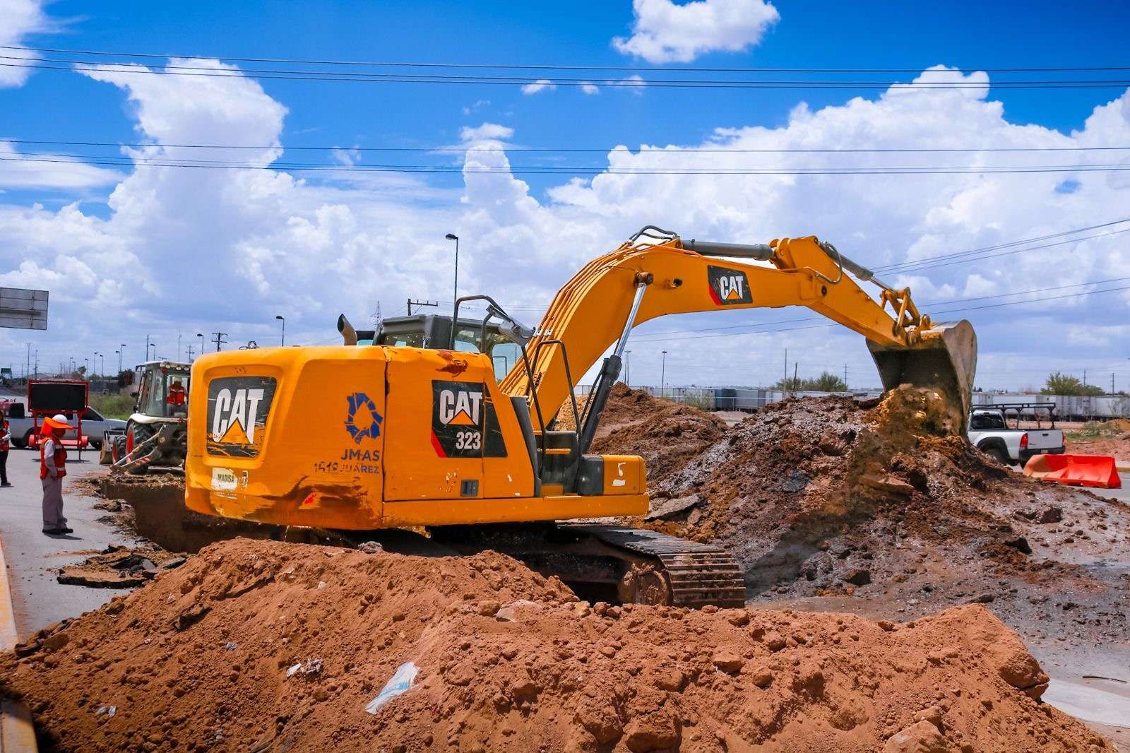 La reparación se lleva a cabo en el mismo punto por personal de la Junta Municipal de Agua y Saneamiento de Juárez, quienes repondrán 8 metros lineales de tubería de 48 pulgadas de diámetro, utilizando maquinaria especializada y con el apoyo de cuadrillas del Departamento de Alcantarillado.