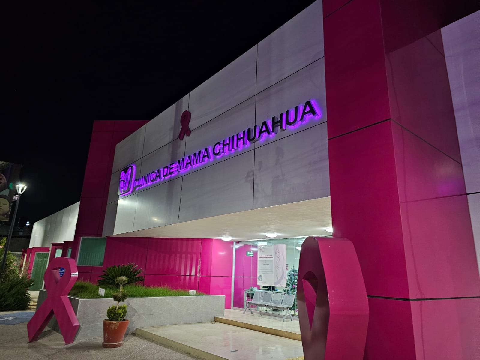 Ciudad Juárez.- El Instituto Mexicano del Seguro Social (IMSS) en Chihuahua iluminó de rosa sus unidades médicas, hospitalarias y administrativas con motivo del Mes de Sensibilización sobre el Cáncer de Mama.