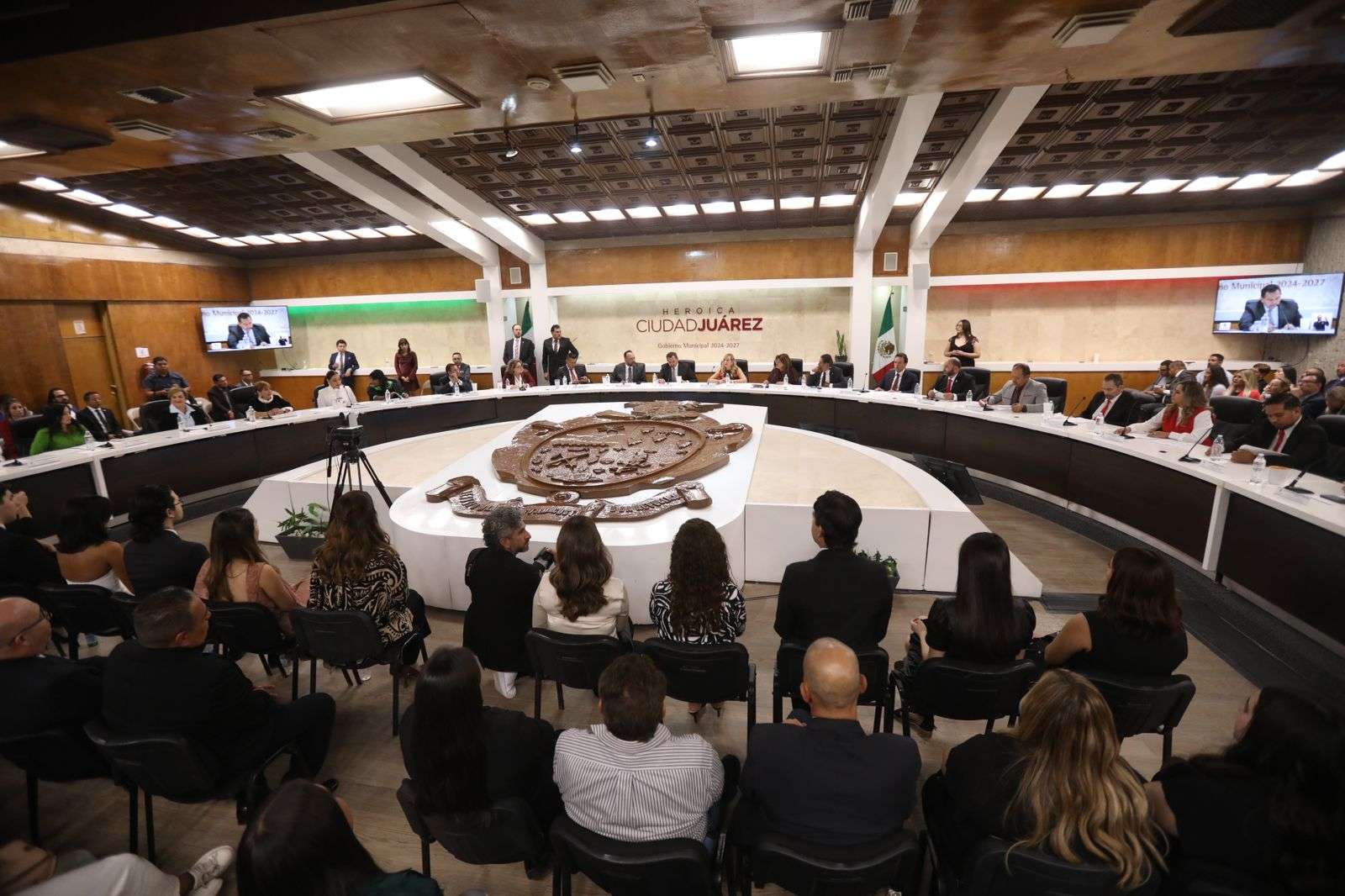 Ciudad Juárez.- El primer minuto de este martes, en sesión solemne de Cabildo, Cruz Pérez Cuéllar rindió protesta constitucional como Presidente Municipal para el periodo 2024-2027.