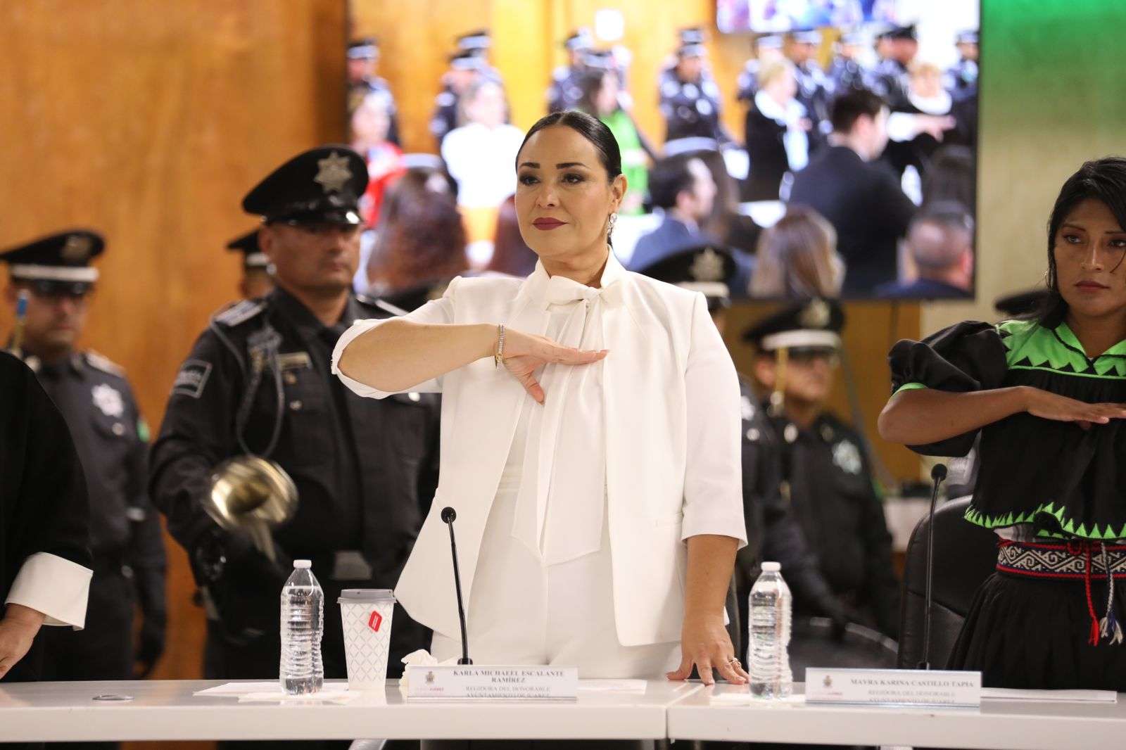 Durante la primera sesión de esta administración, también rindió protesta Ana Carmen Estrada García, como Síndica Municipal, en tanto, el Presidente Pérez Cuéllar tomó protesta a Héctor Rafael Ortiz Orpinel como secretario de la Presidencia y del Honorable Ayuntamiento.